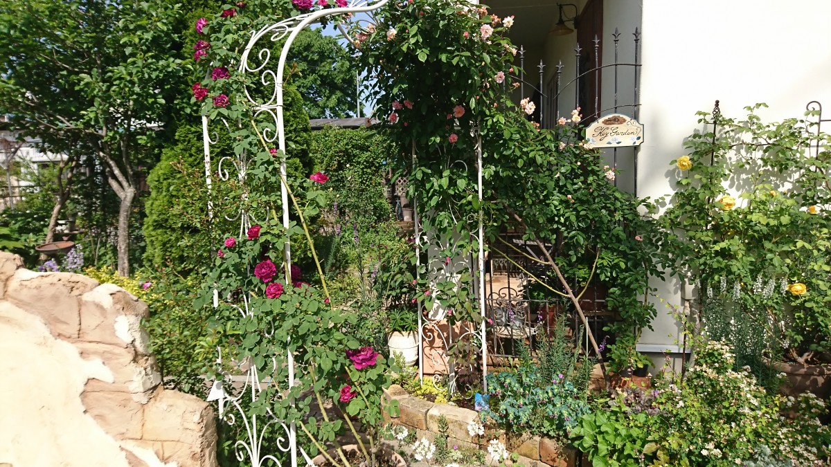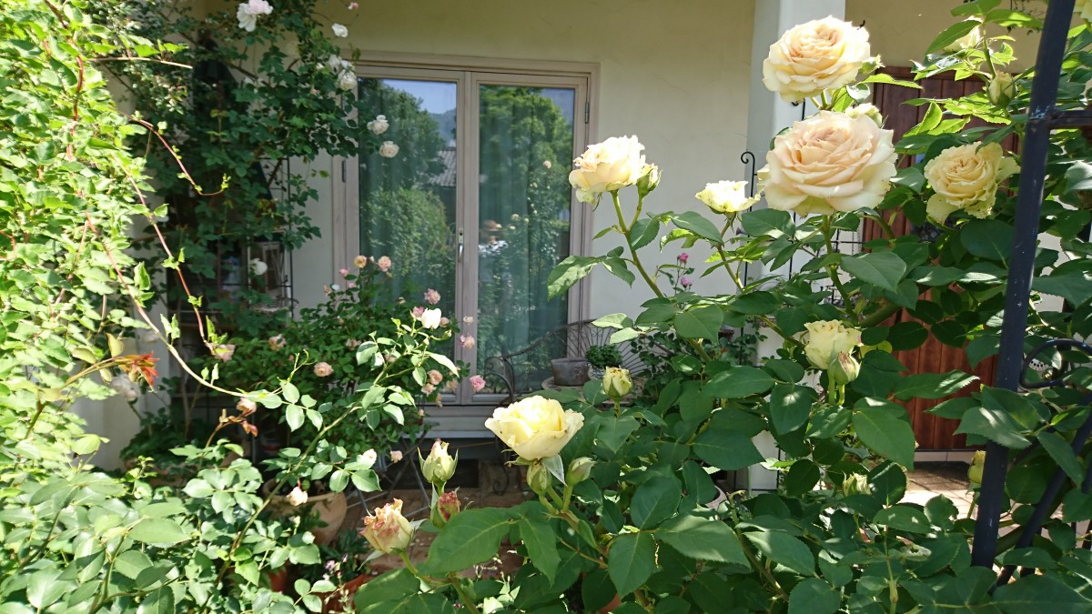 アーチのエメラルドアイル、スブニール・デュ・ドクトル・ジャメン、コーネリアが咲いています