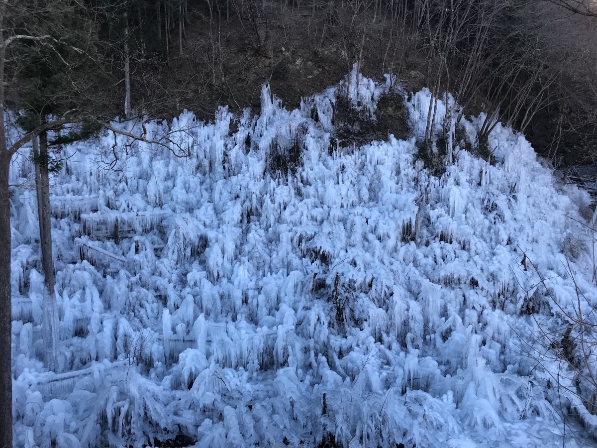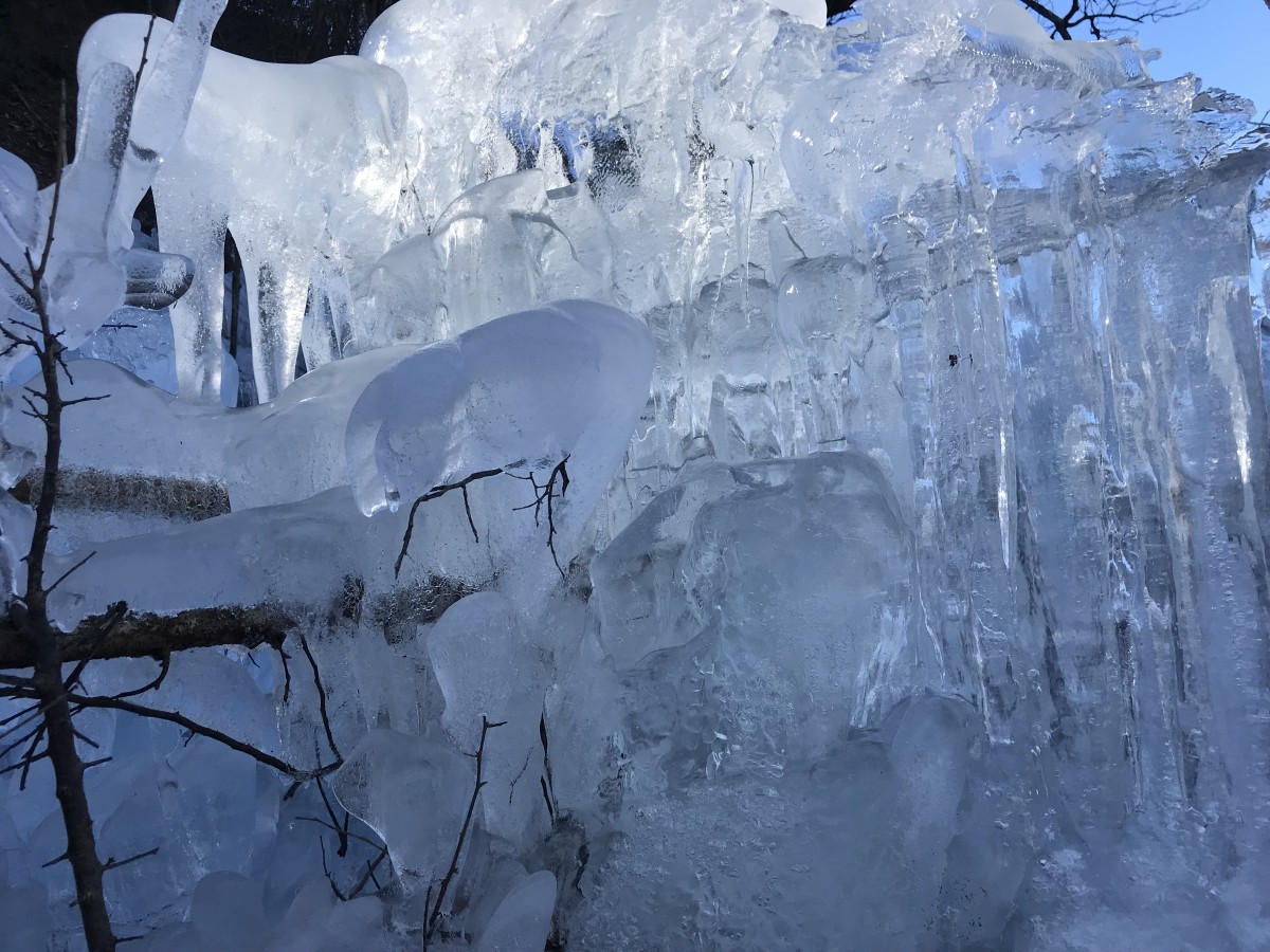 現在の氷柱は、雪を被り氷の青白さがとても美しく、まさに氷の華が咲いているようです。