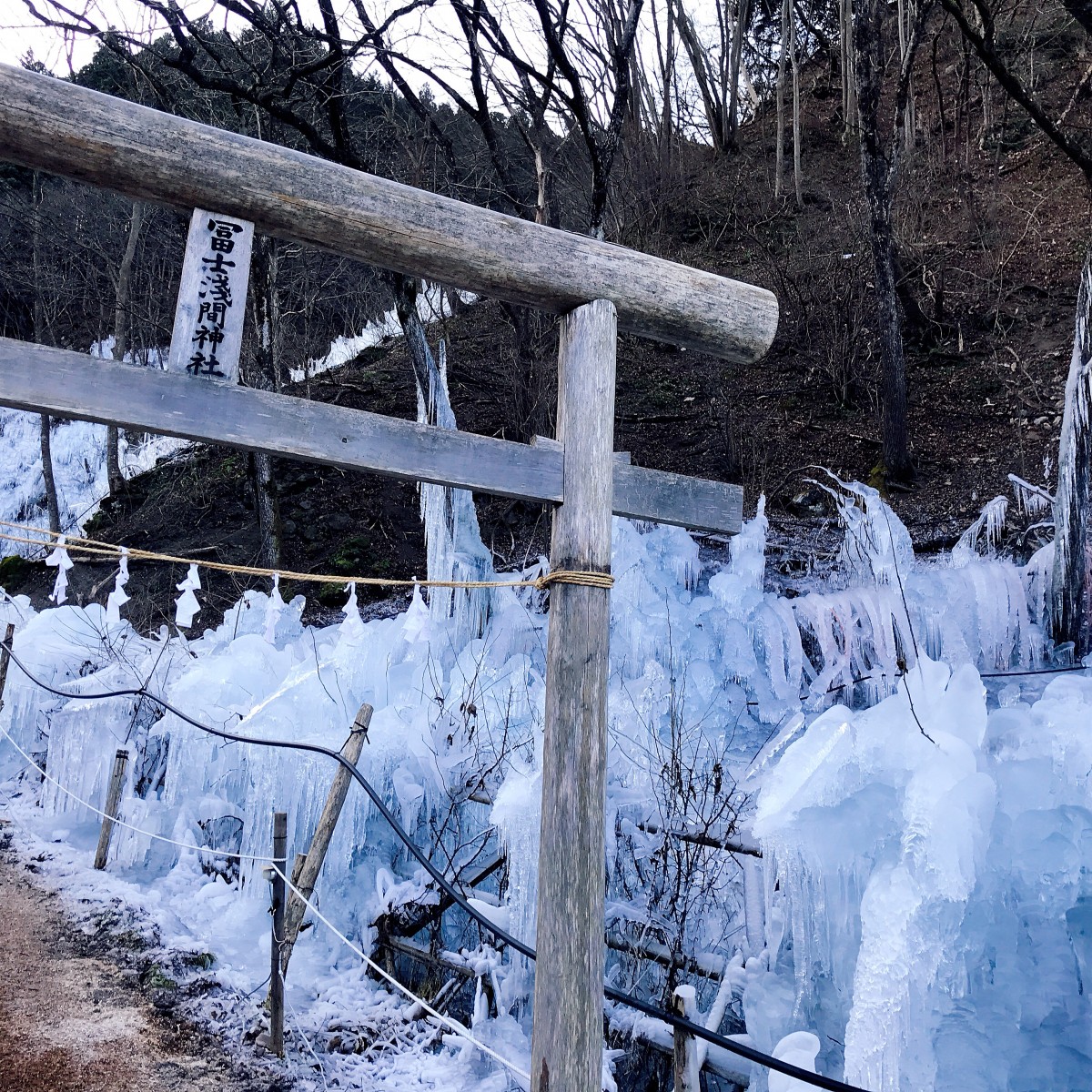フォトスポットあしがくぼの氷柱へみんな集まれ~!