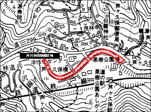 横瀬川の上芦ケ久保橋から芦ケ久保橋下流約150m