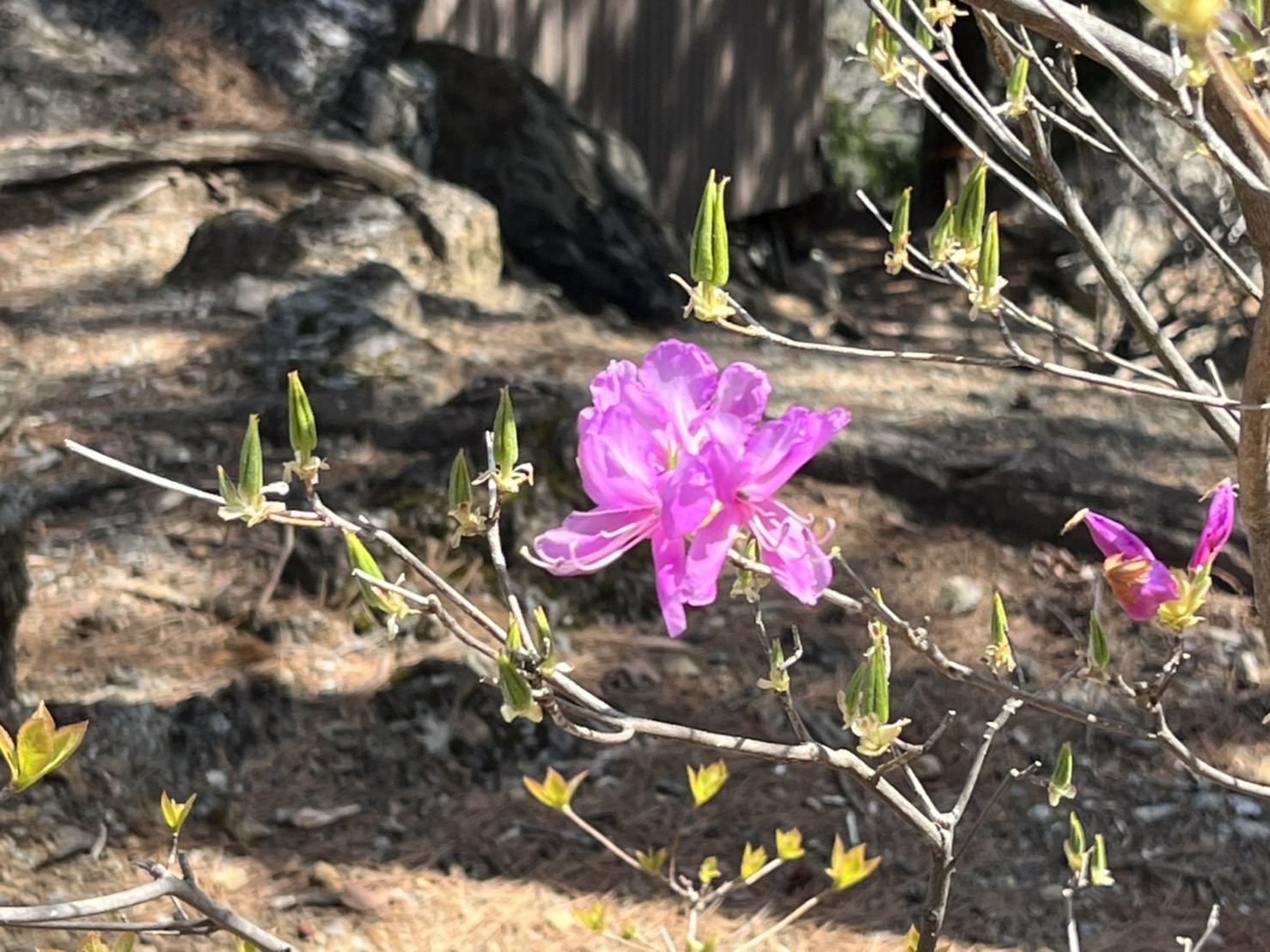 浅間神社付近のアカヤシオツツジと岩ツツジが咲いております。浅間神社コース山頂付近は落ち葉で滑りやすい状態です。