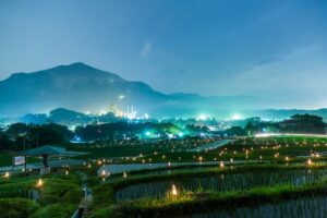 棚田に約600個のかがり火を点火し、幻想的な空間を体験することができます。