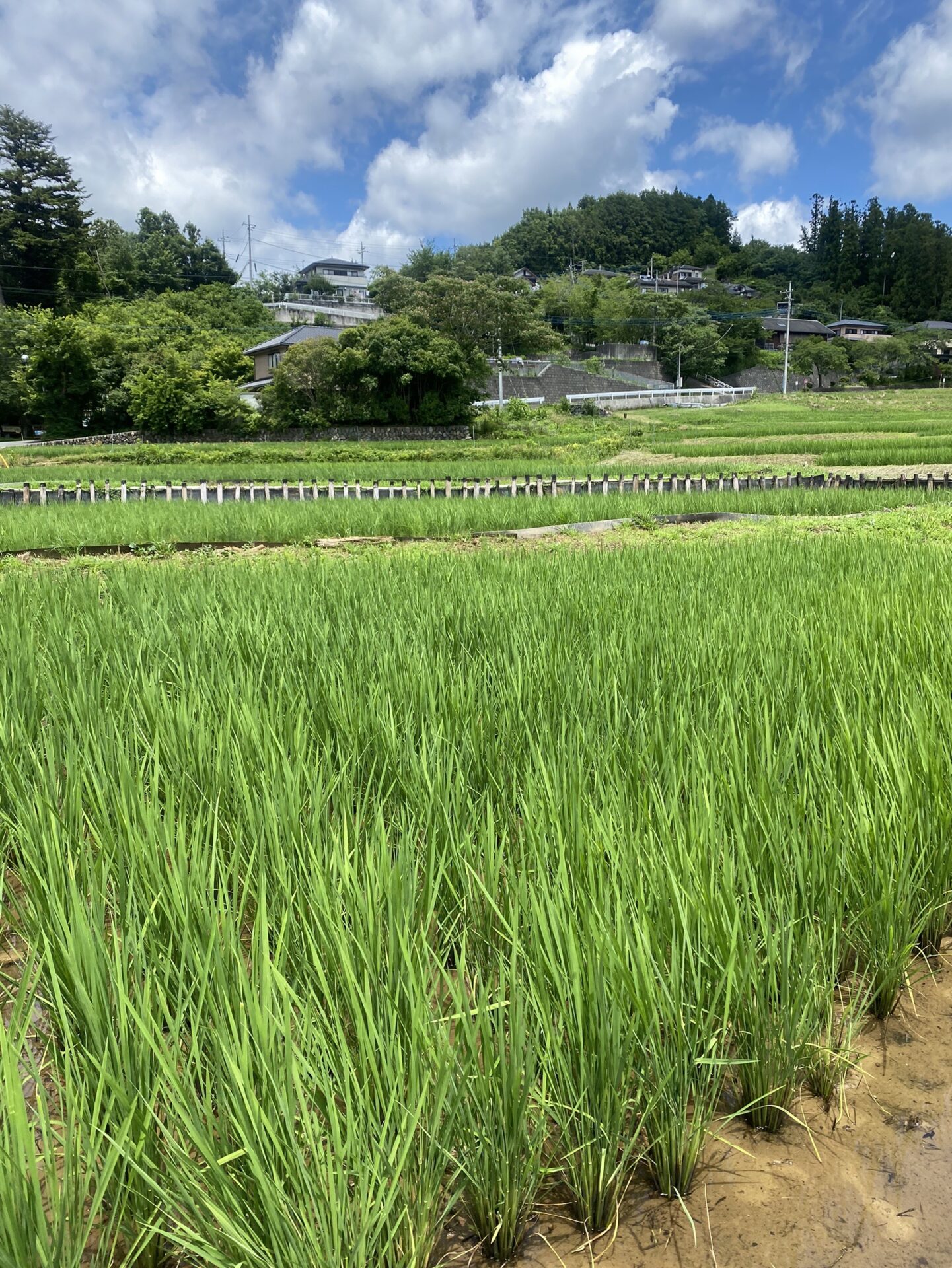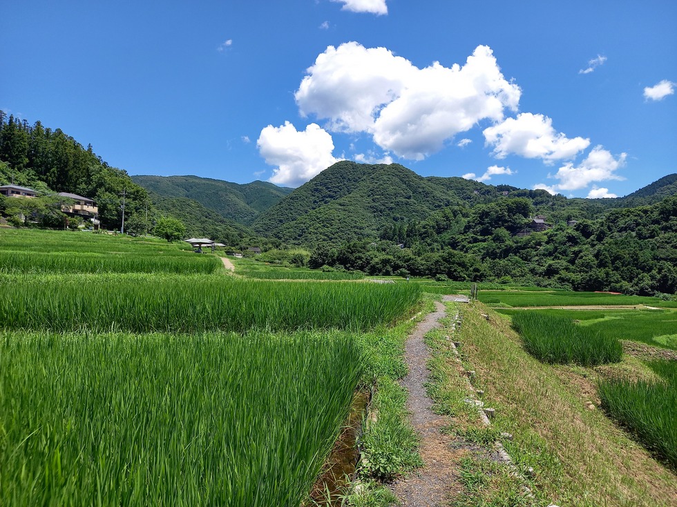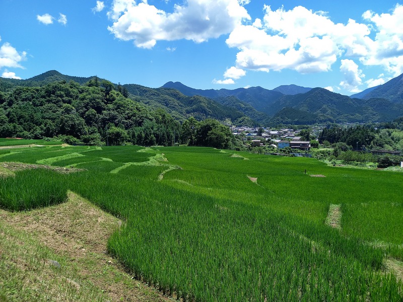 前回から時が流れてしまいましたが・・・梅雨明けしました。今日の棚田の様子です。青空の元、青々とした稲の育つ棚田を歩きます。MVP?大谷?野球ファンのアイディア?これって、どうやって文字にしたのだろう。色々と考えてしまいますが、棚田はそんな細かな考えを優しく大きく包みこんでくれます。お天気の良い日は、水分補給をしながら棚田のお散歩をお勧めします。