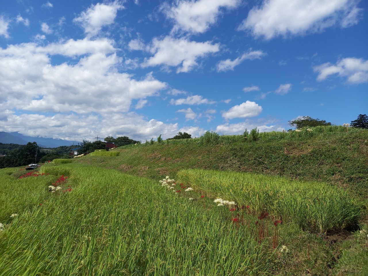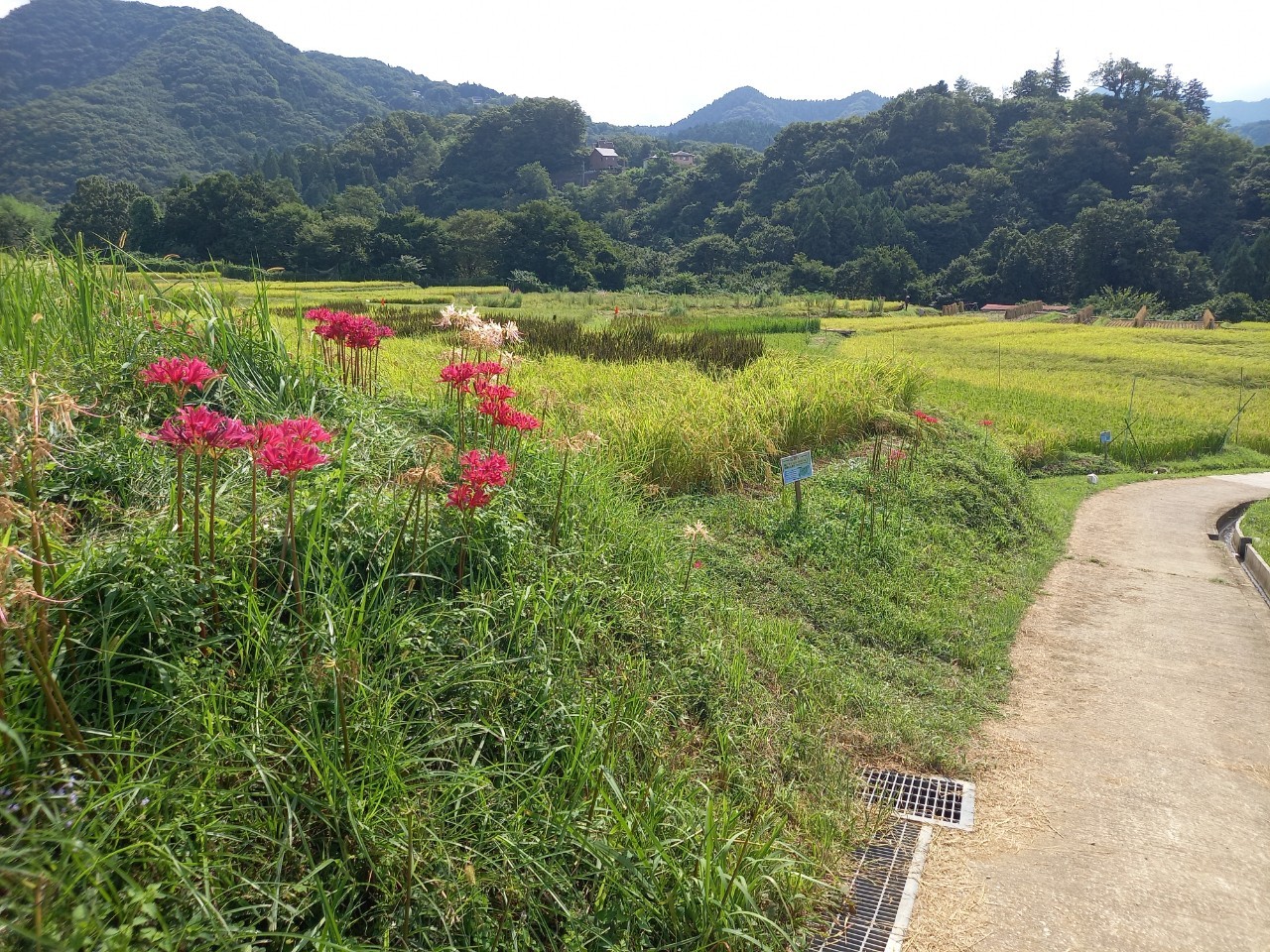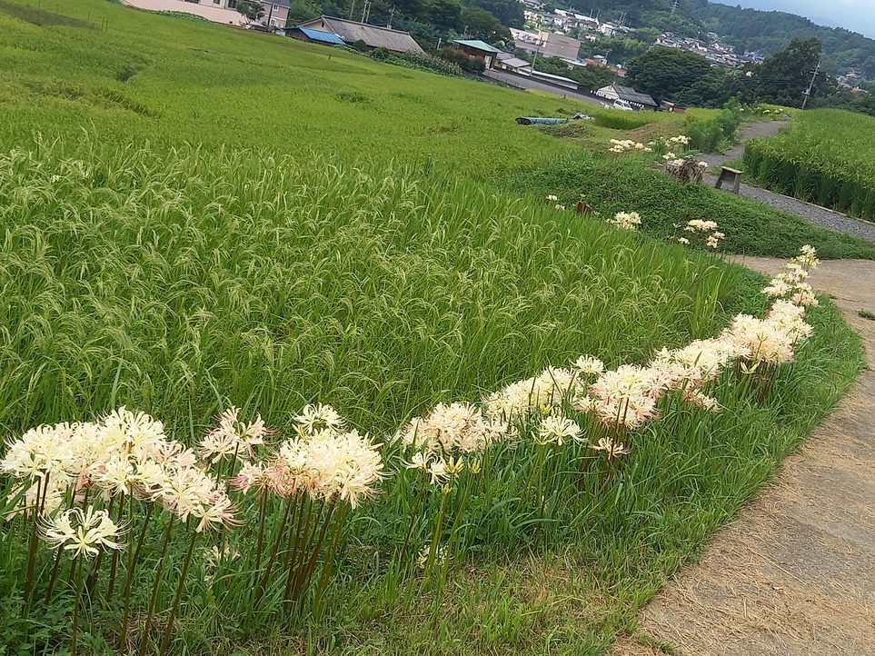 9月4日の様子。畔に白い彼岸花(リコリス)が写真のように咲いております。