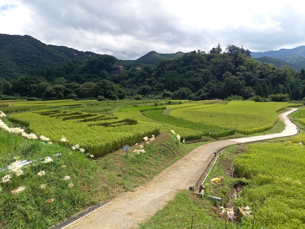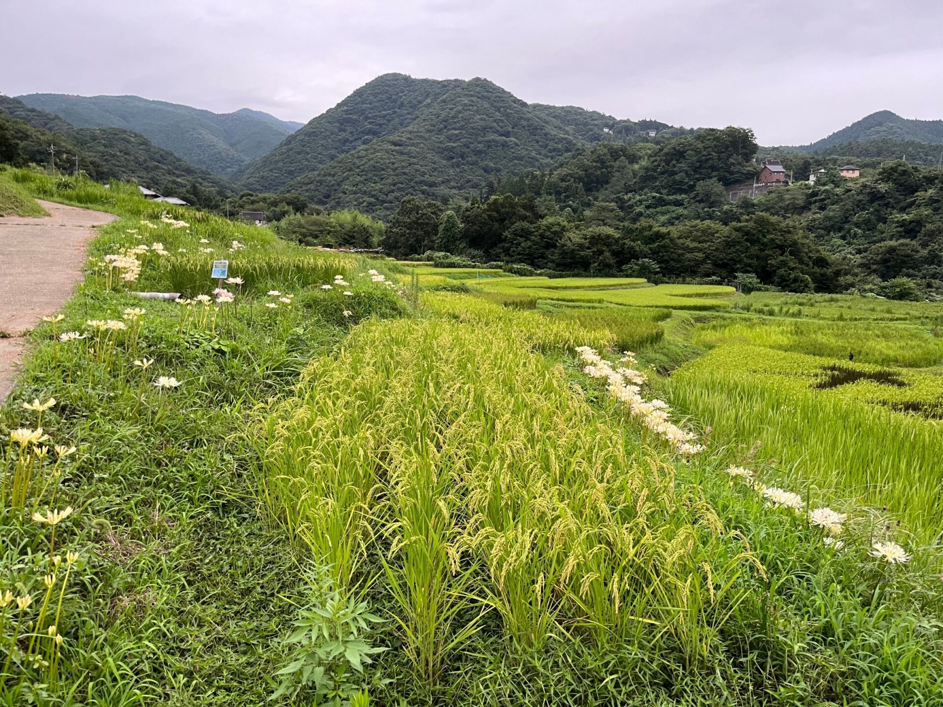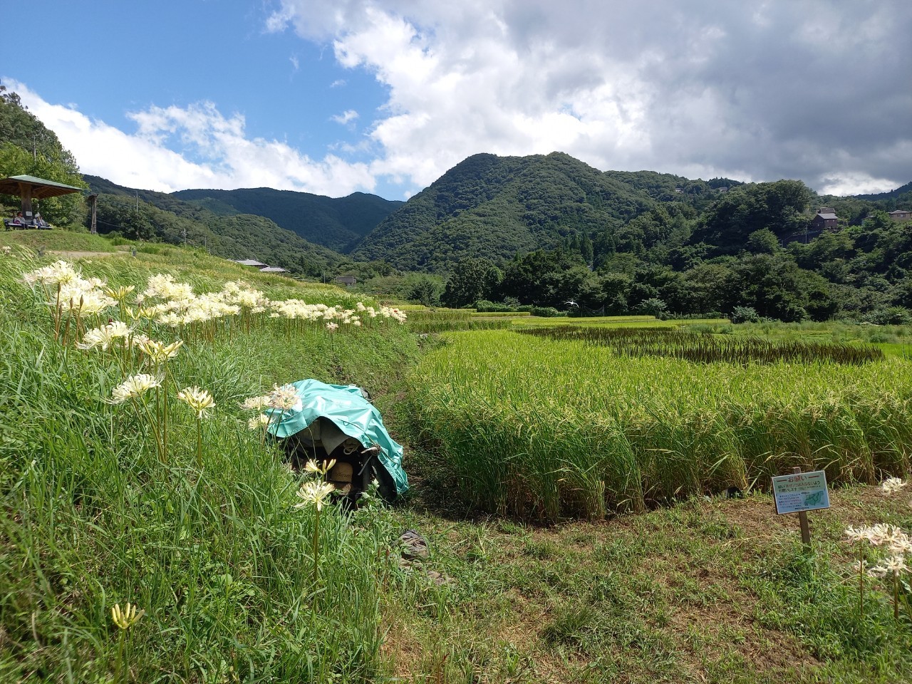 9月4日の様子。畔に白い彼岸花(リコリス)が写真のように咲いております。