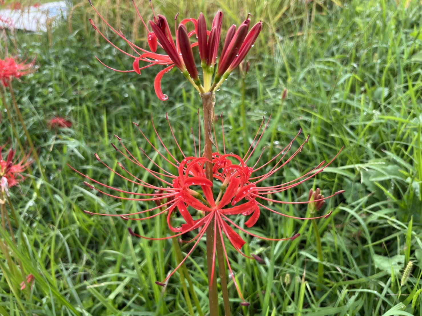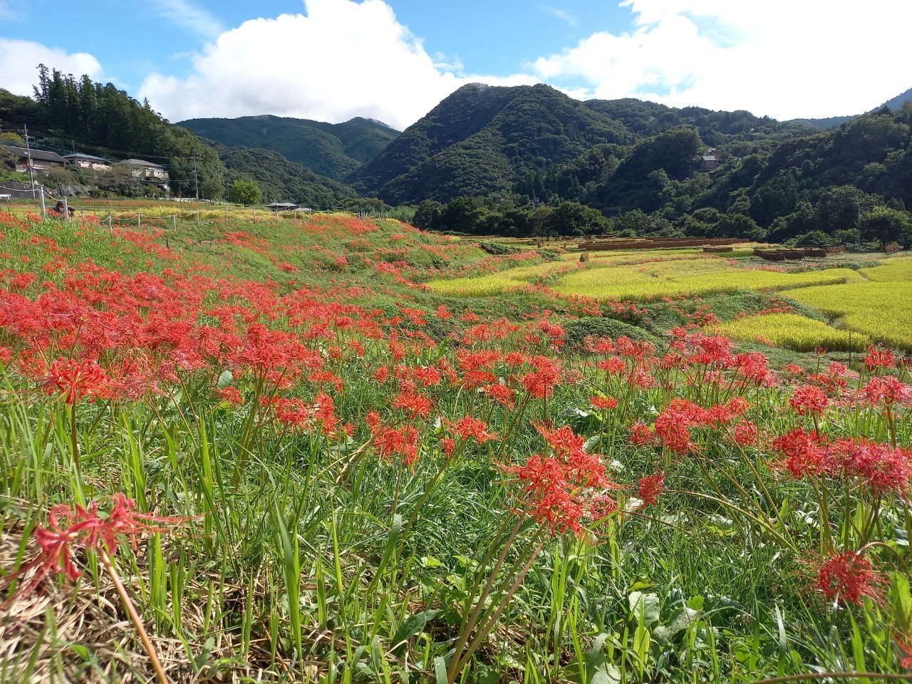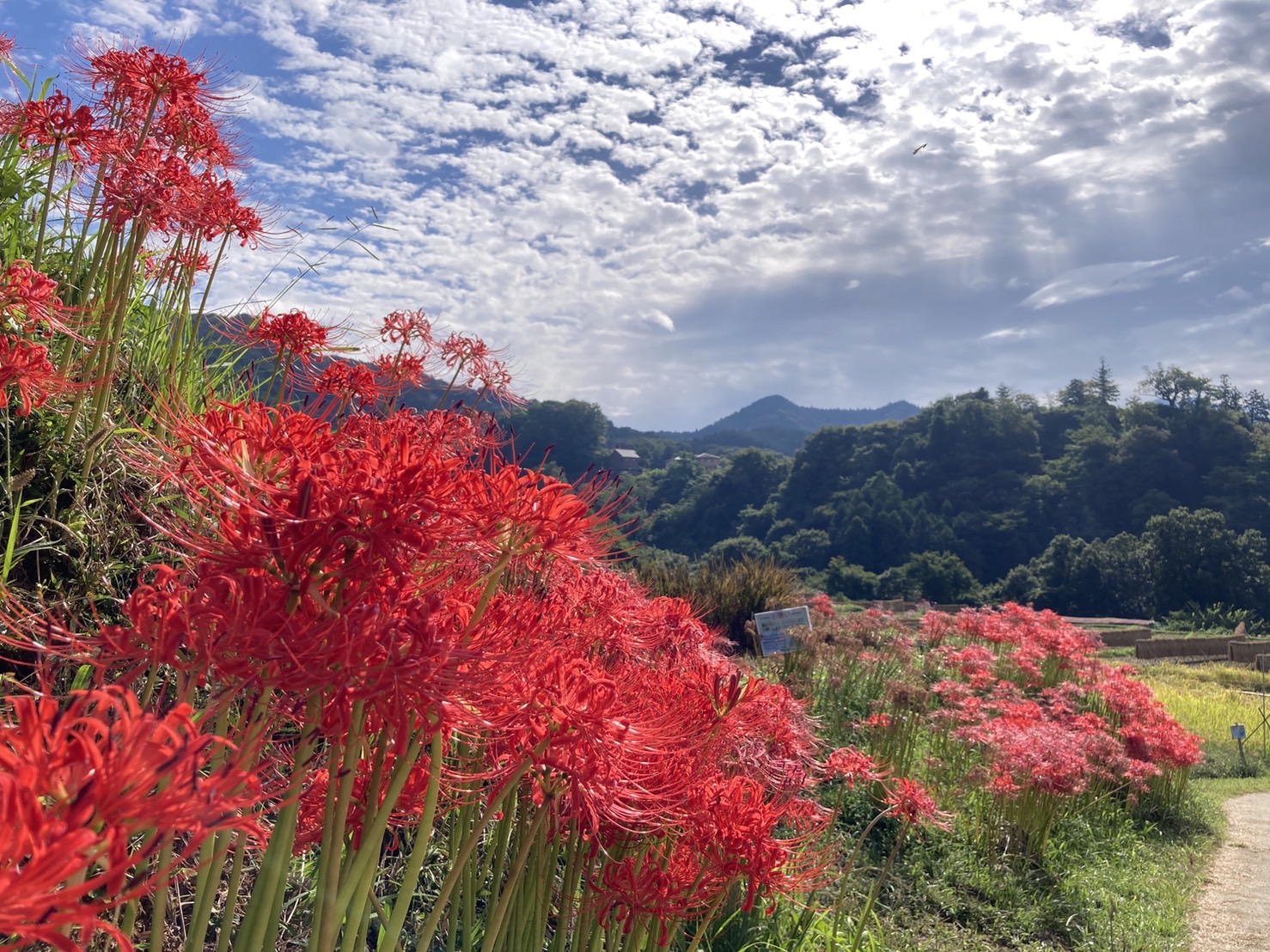 台風通過後の写真です。一層彼岸花の開花が進み、台風の大きな被害もなく、彼岸花は見ごろを迎えています。