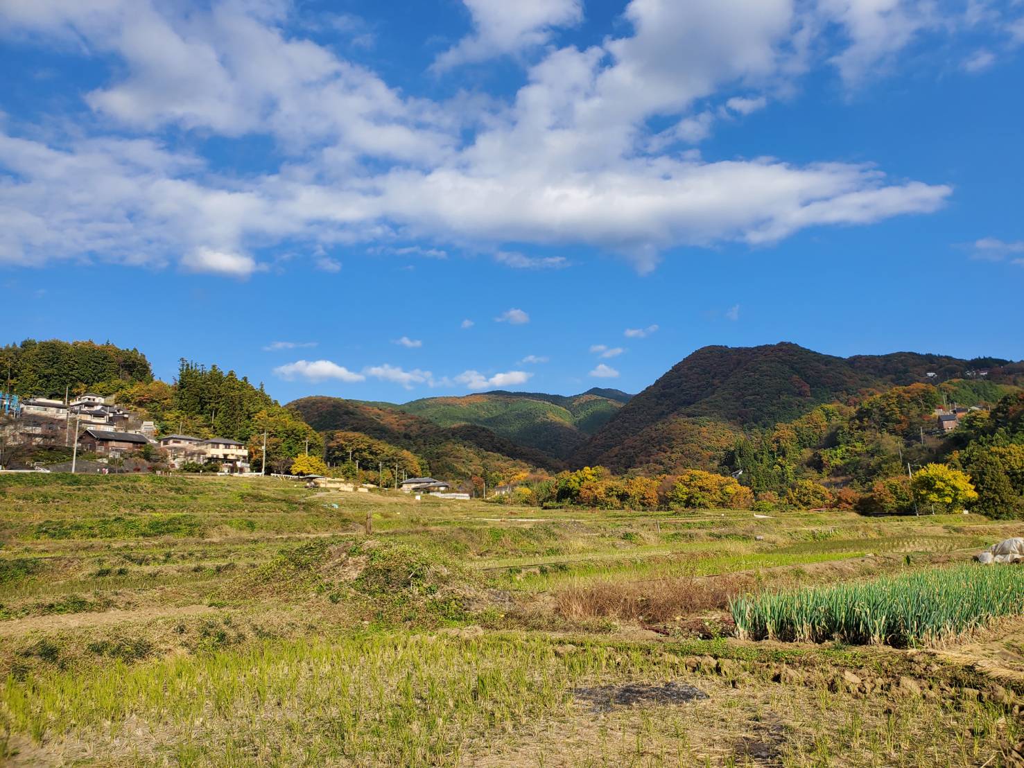 今日の様子です。稲刈りが終わり農作業も進んでいますが、秋の風景を楽しむことができました。