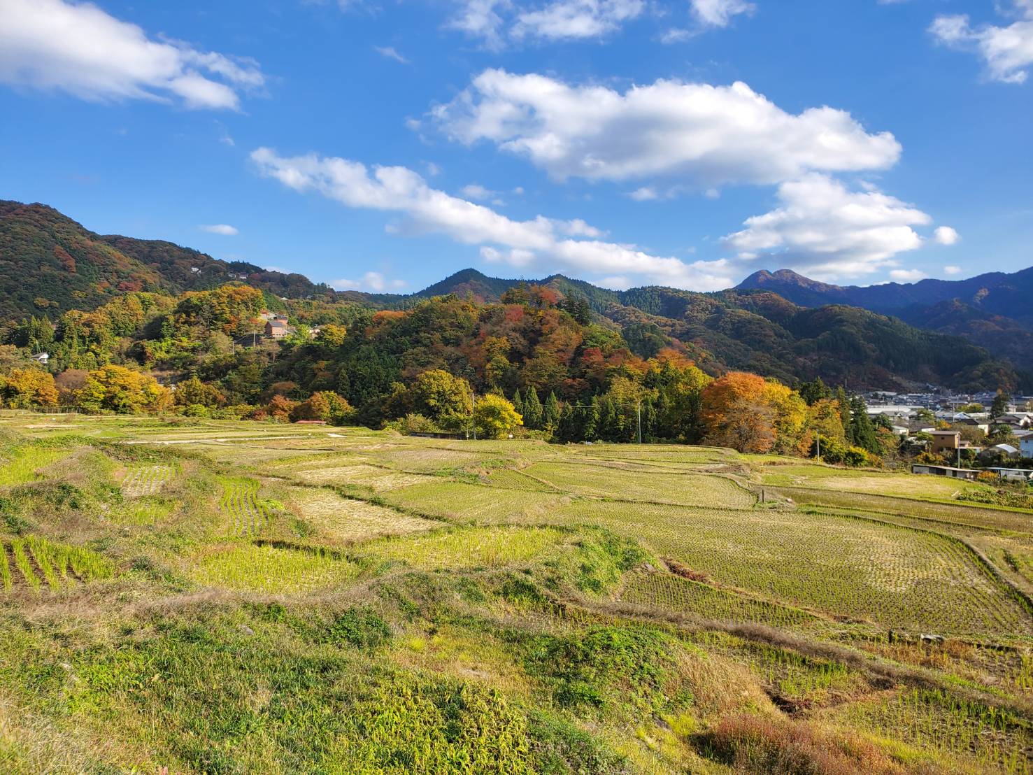 棚田から晩秋の景色も楽しめます。
