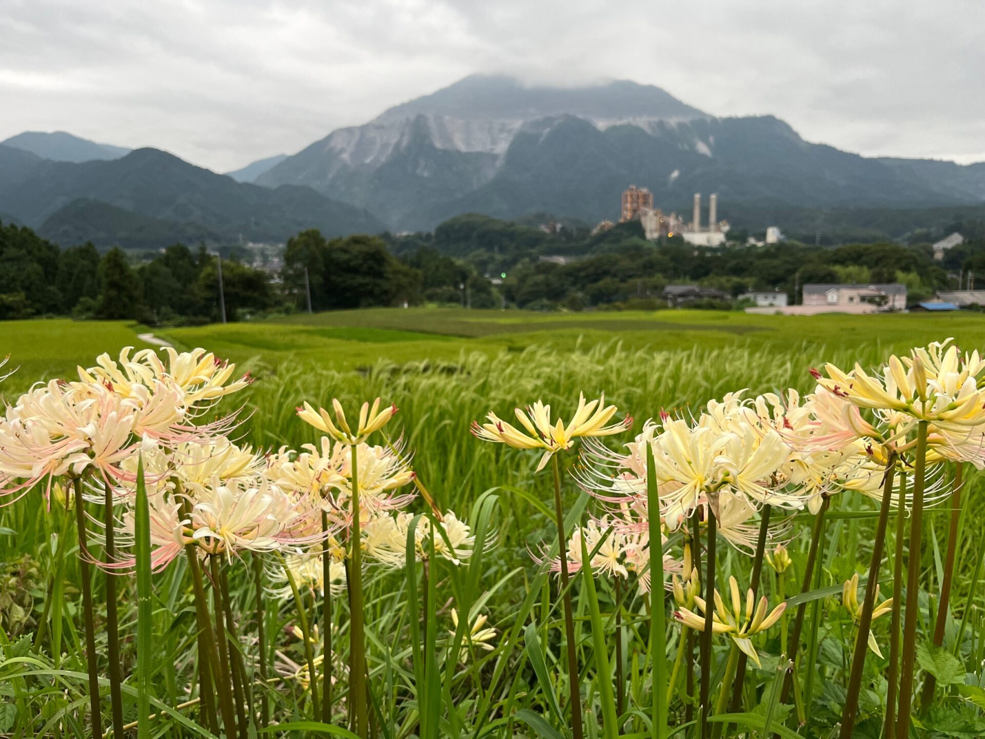 昨日昼過ぎの風景。埼玉県秩父地方の横瀬町にも夏が来ました!武甲山、青空、スクスク育っている稲・・・夏一色!