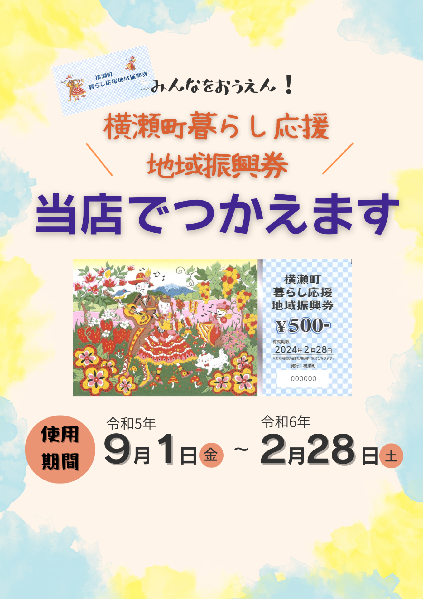 横瀬町暮らし応援地域振興券が使えるお店一覧