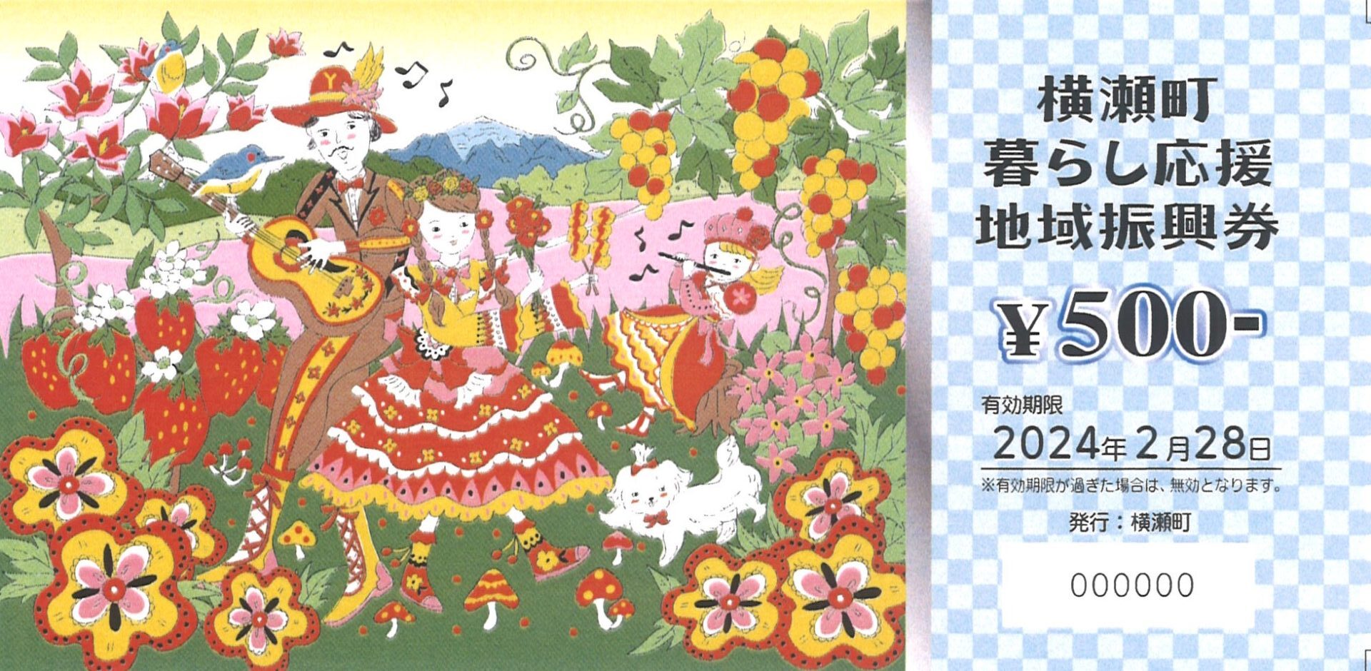 地域振興券 5,000円分を横瀬町全住民に発行します。