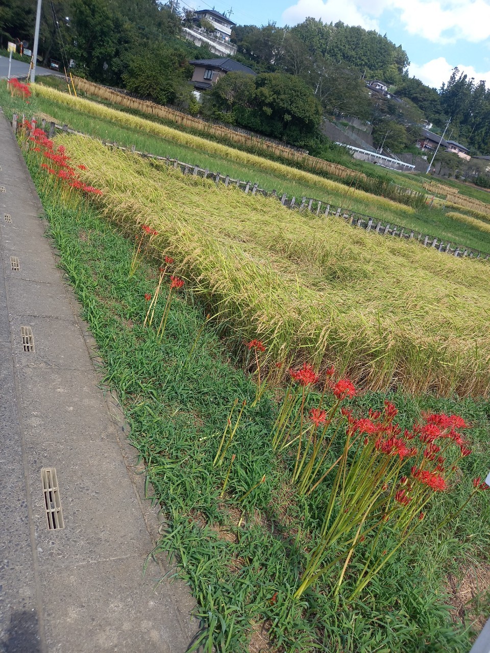 彼岸花は大半が見ごろと言ってもいい状態になっていました。蕾や枯れてしまった彼岸花もチラホラとはありますが、ほとんどが咲いています。はぜ掛けも順調に進み、秋の訪れを感じますね。