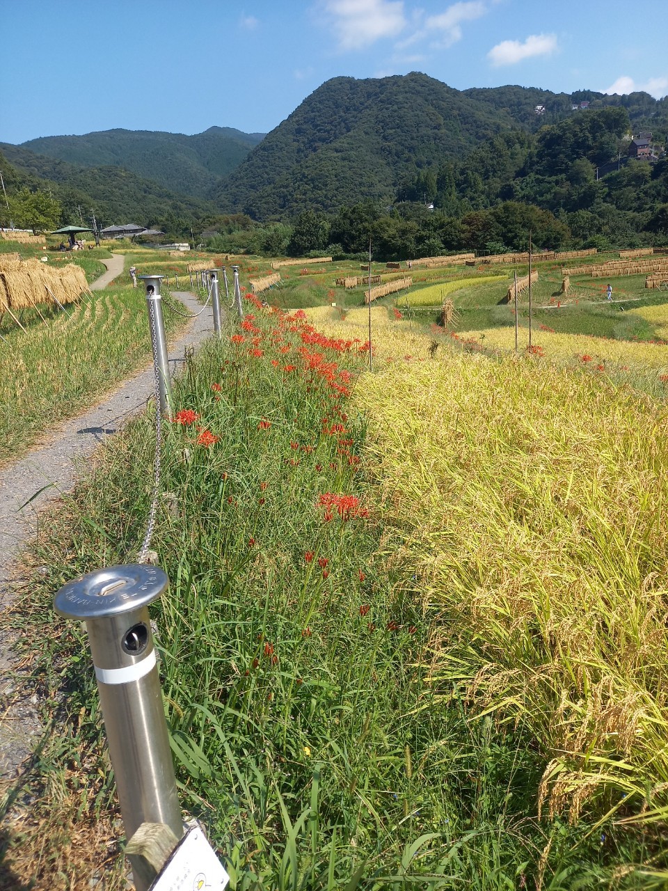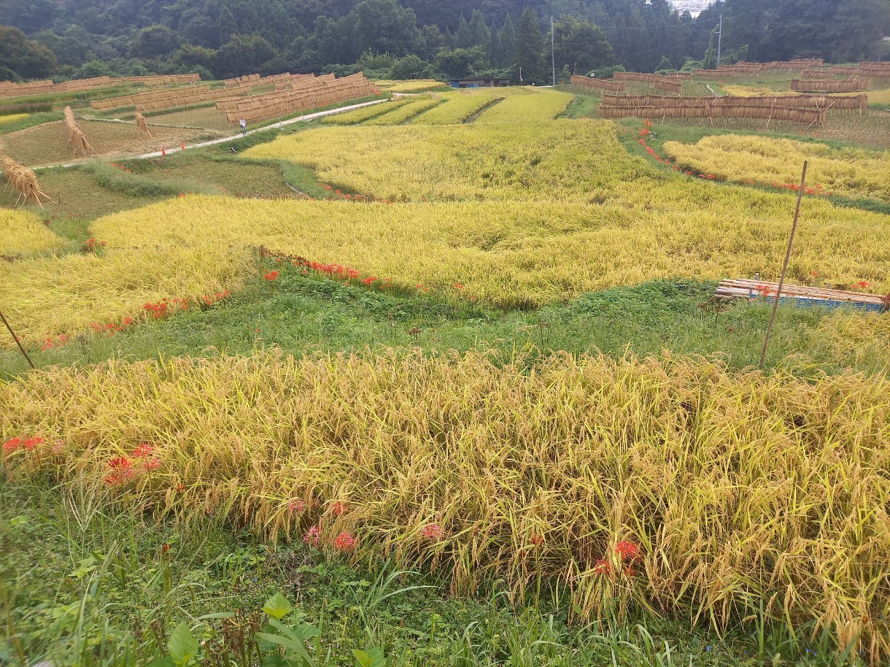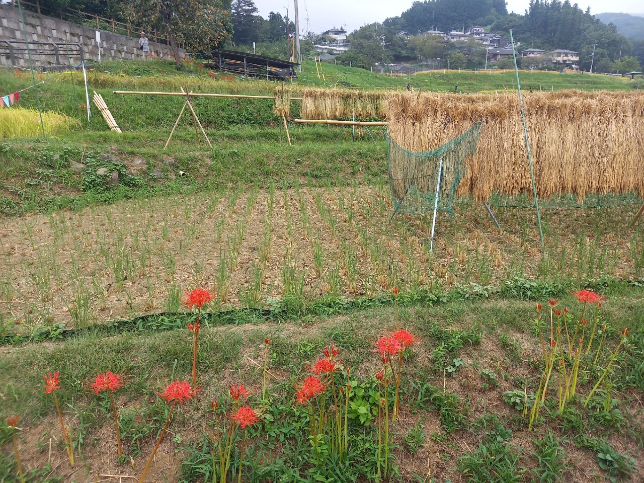 はぜかけと、彼岸花の咲き具合。日々刻々と棚田の景色が変わっていきます。