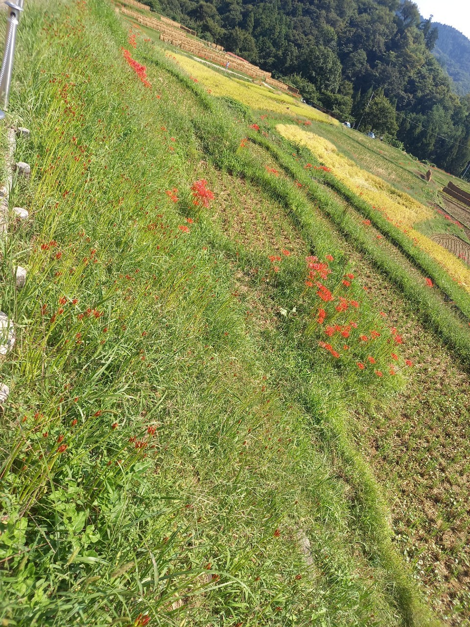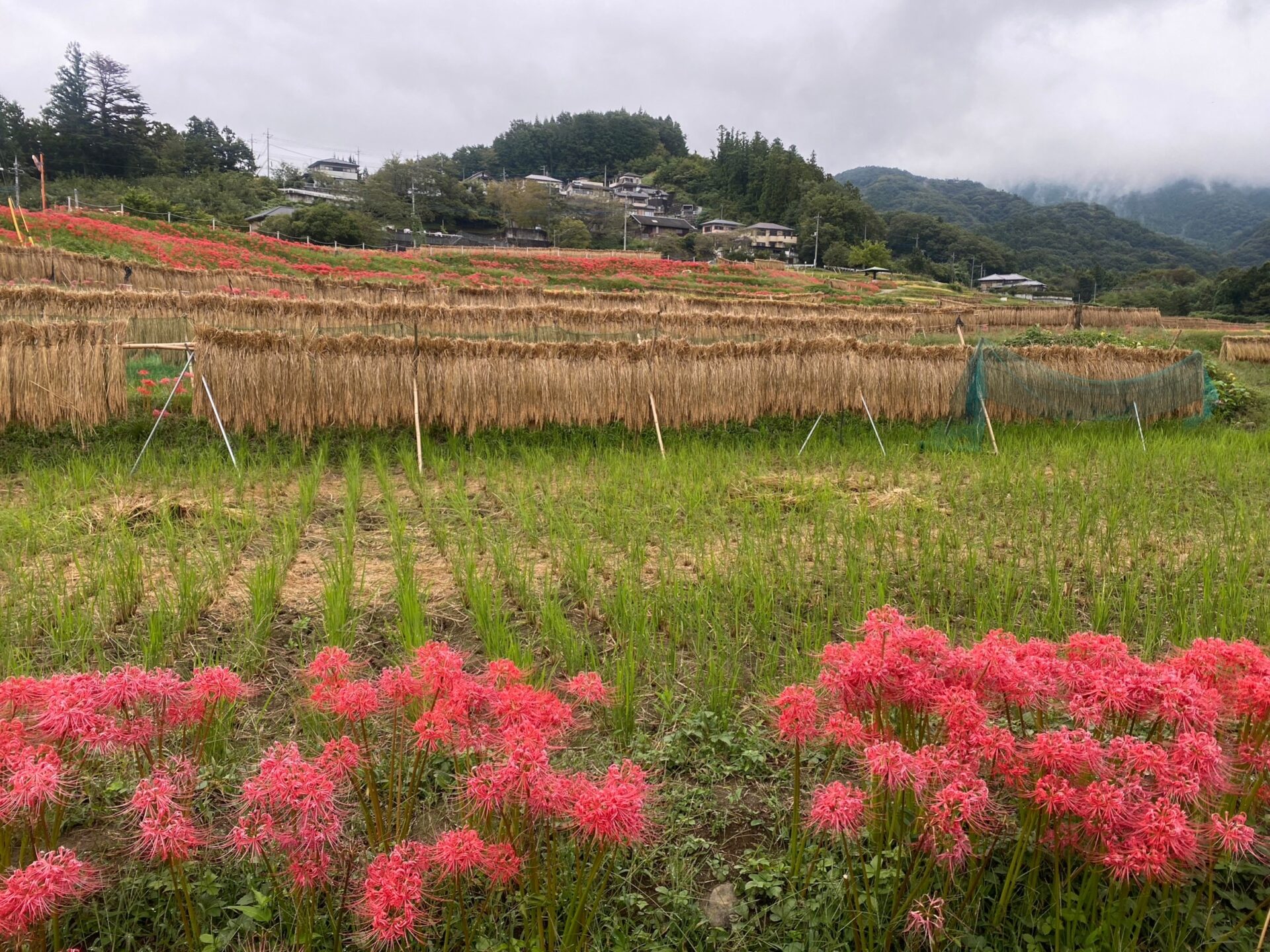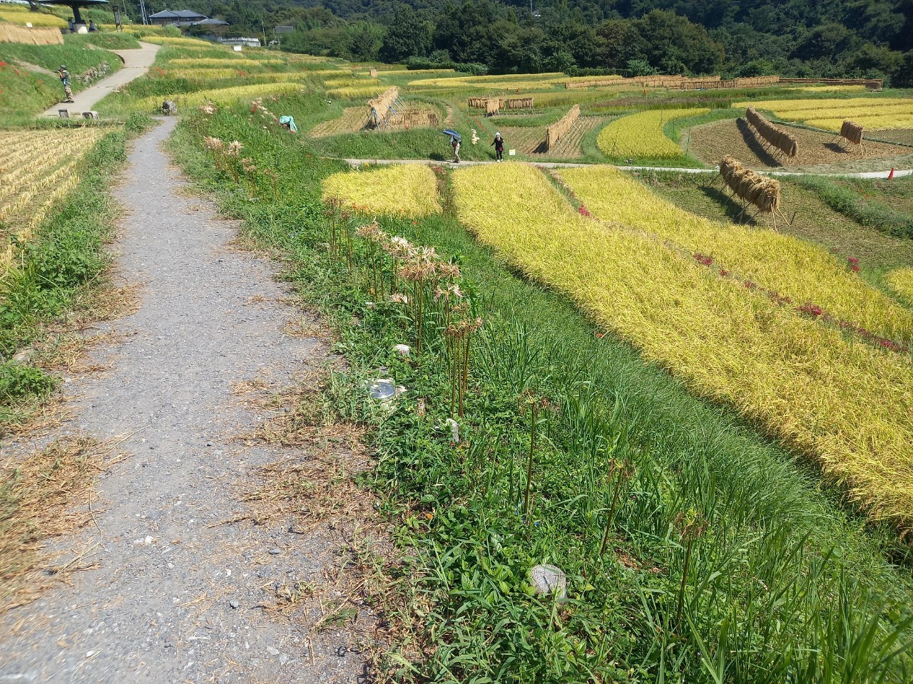 はぜかけと、彼岸花の咲き具合。日々刻々と棚田の景色が変わっていきます。