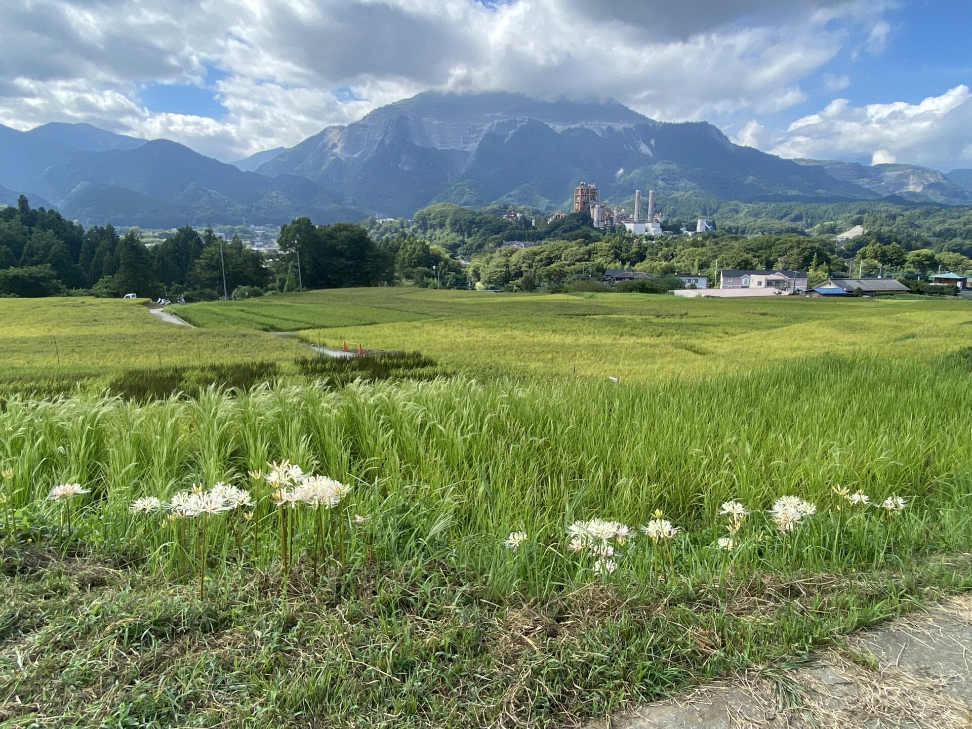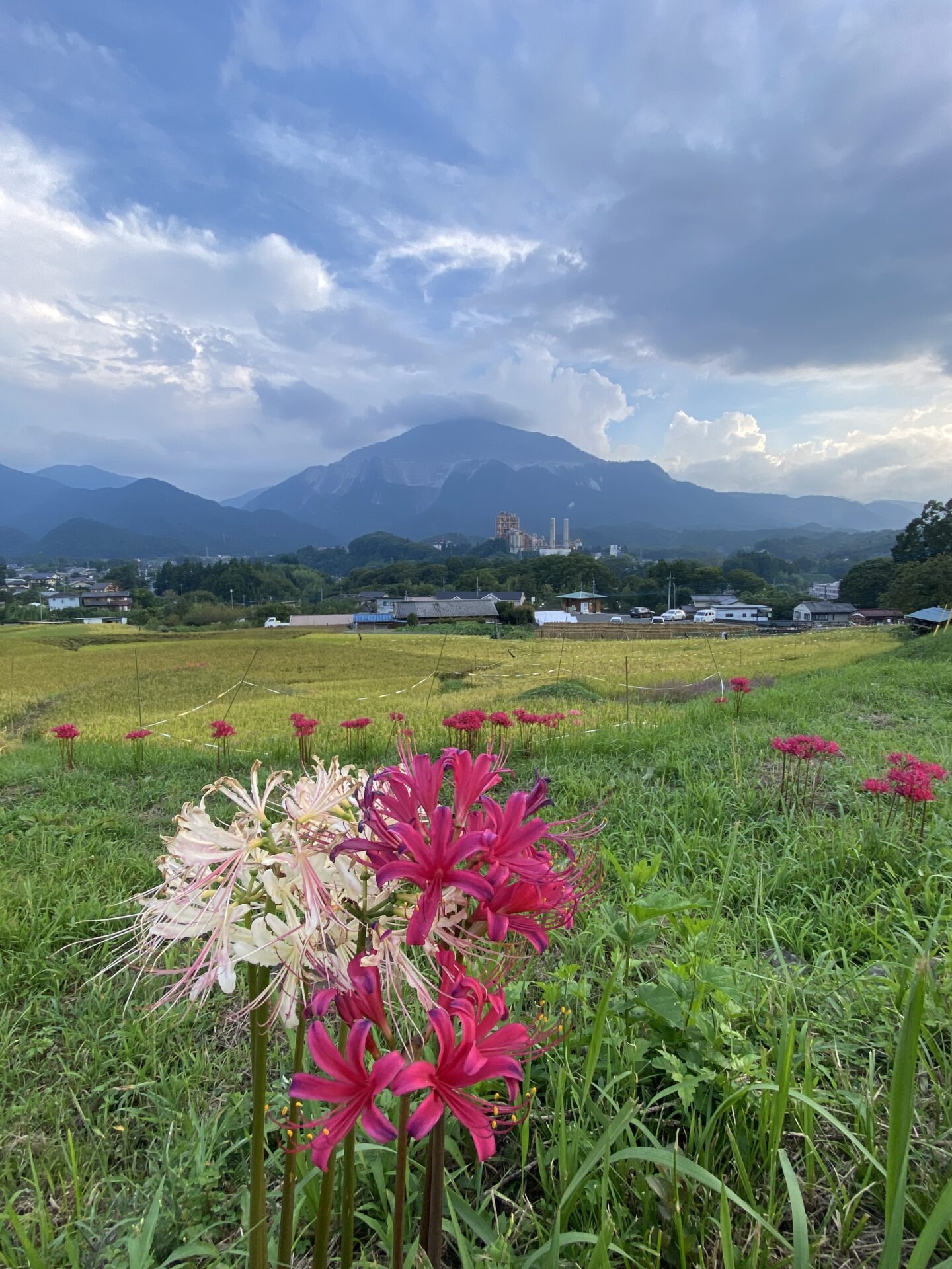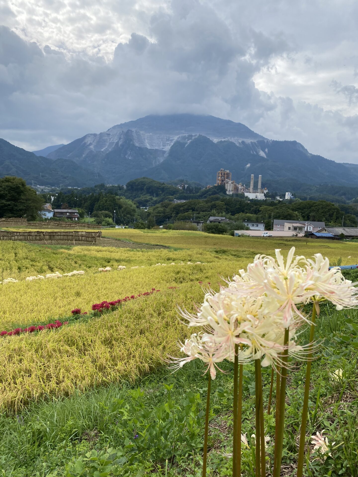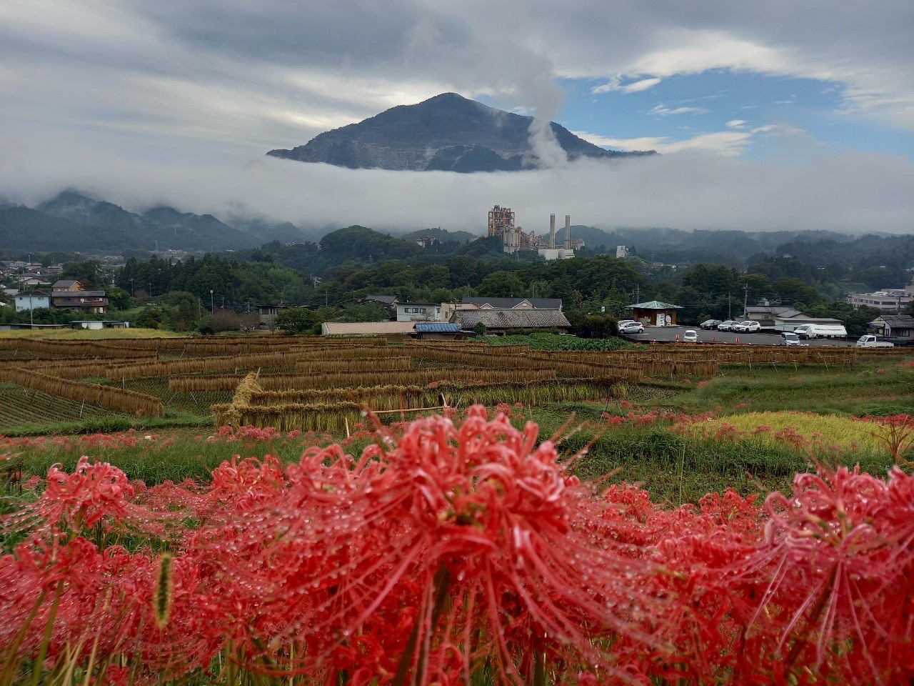 海のように広がる雲に朱色に彩る彼岸花と黄金色に光る稲穂が雄大な武甲山を美しく飾っておりました。