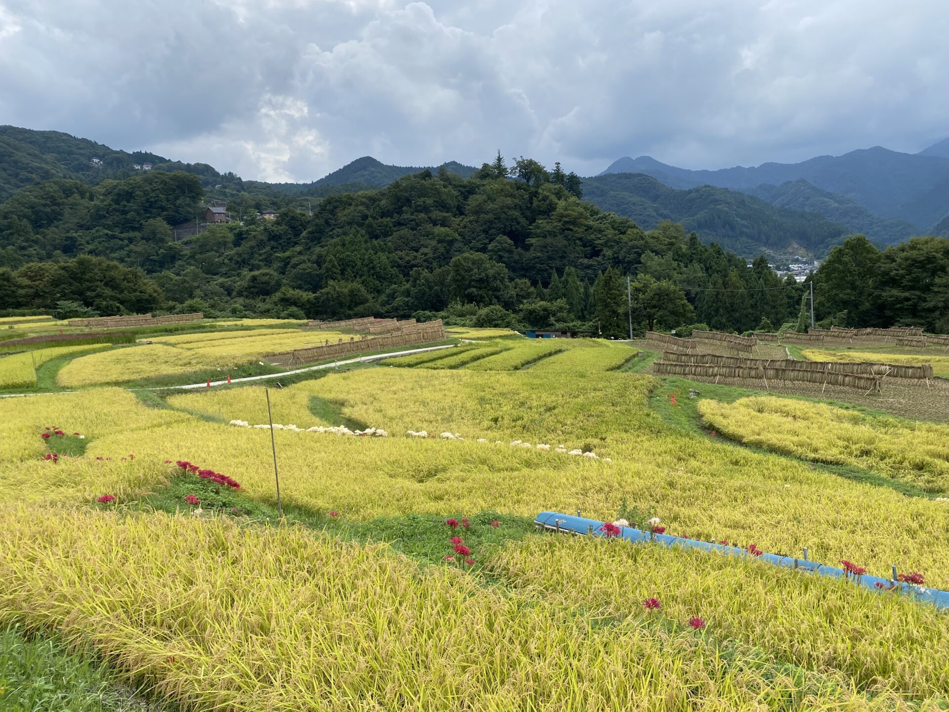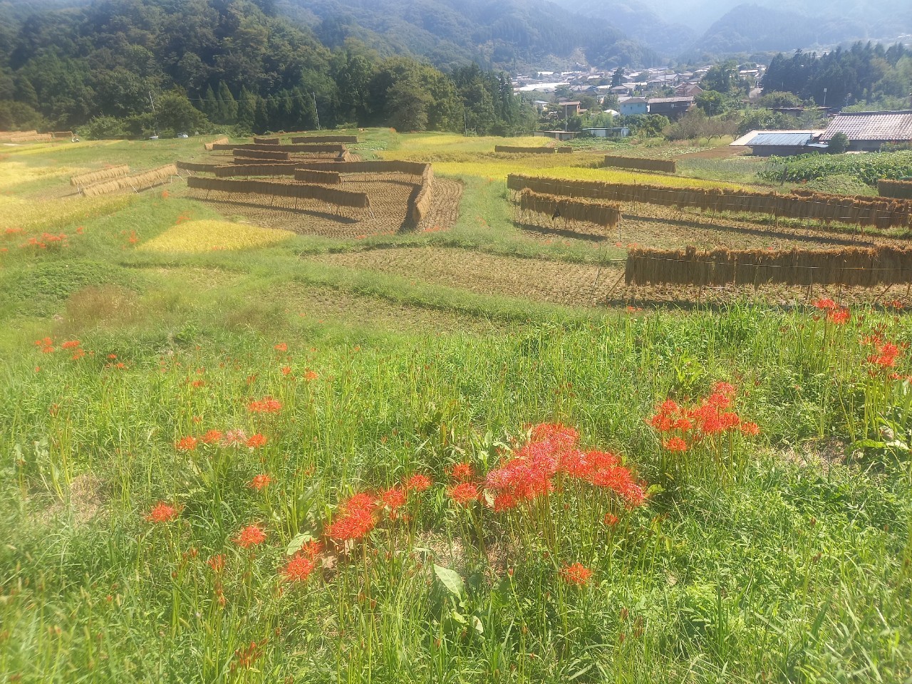 棚田のはぜ掛けも順調に進み、彼岸花と共に、季節の移り行きを感じます。