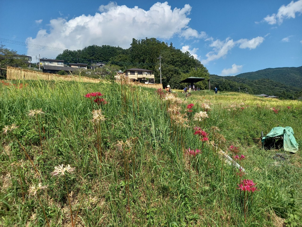 彼岸花は概ね見ごろを迎えようとしておりますが、棚田の場所によっては見ごろを過ぎたものやまだ芽の状態で