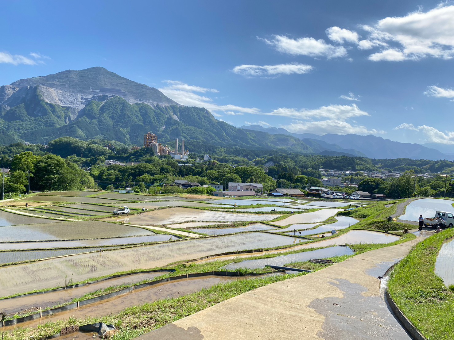 棚田に水が入り、本日「逆さ武甲山」を見ることができました!
