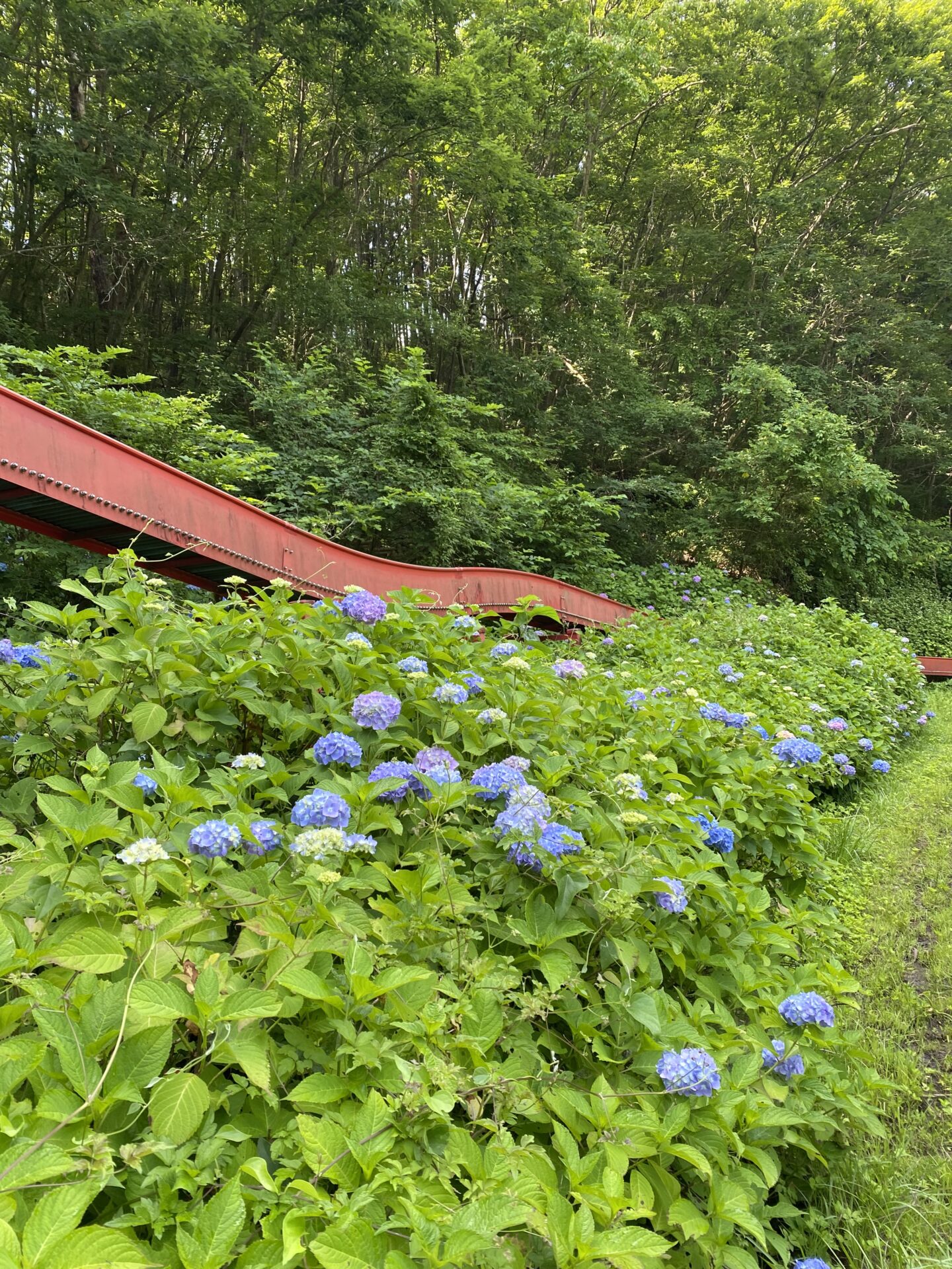 アジサイを臨みながら、100mのローラー滑り台で風を感じましょ♪