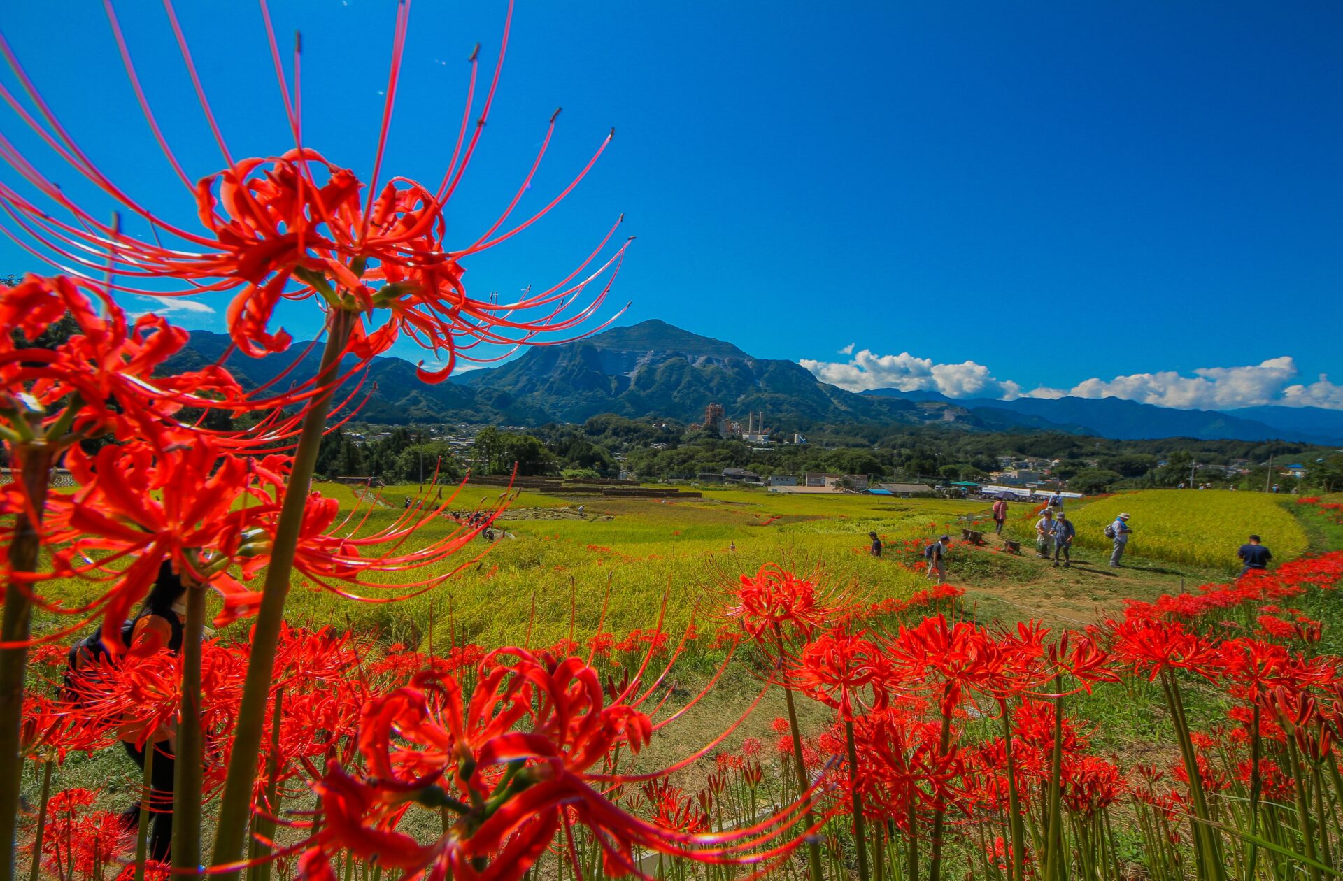 ・県内最大級の広さを誇る寺坂棚田で200万球の彼岸花と黄金の稲穂を見学