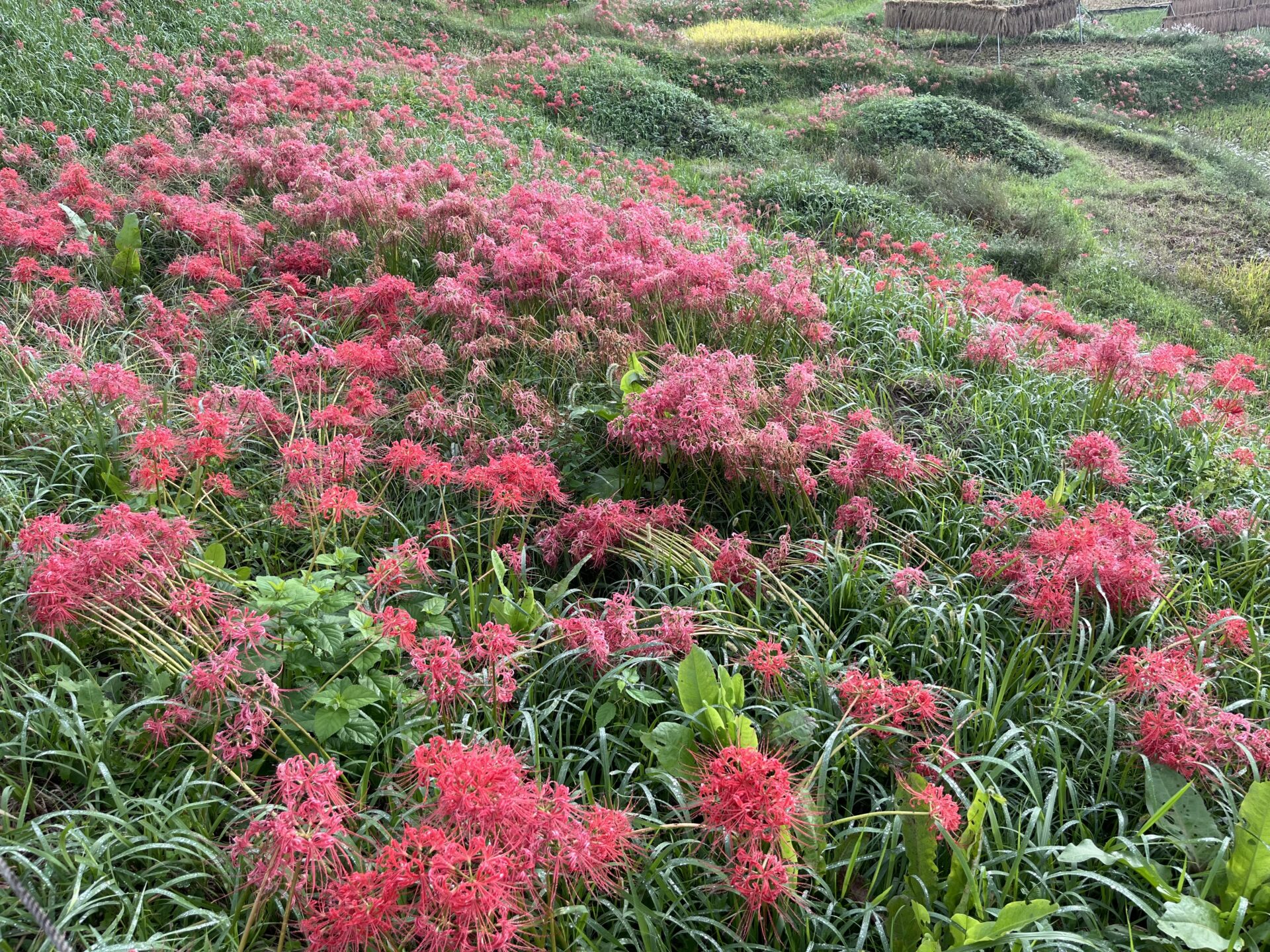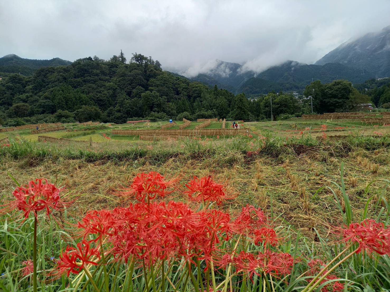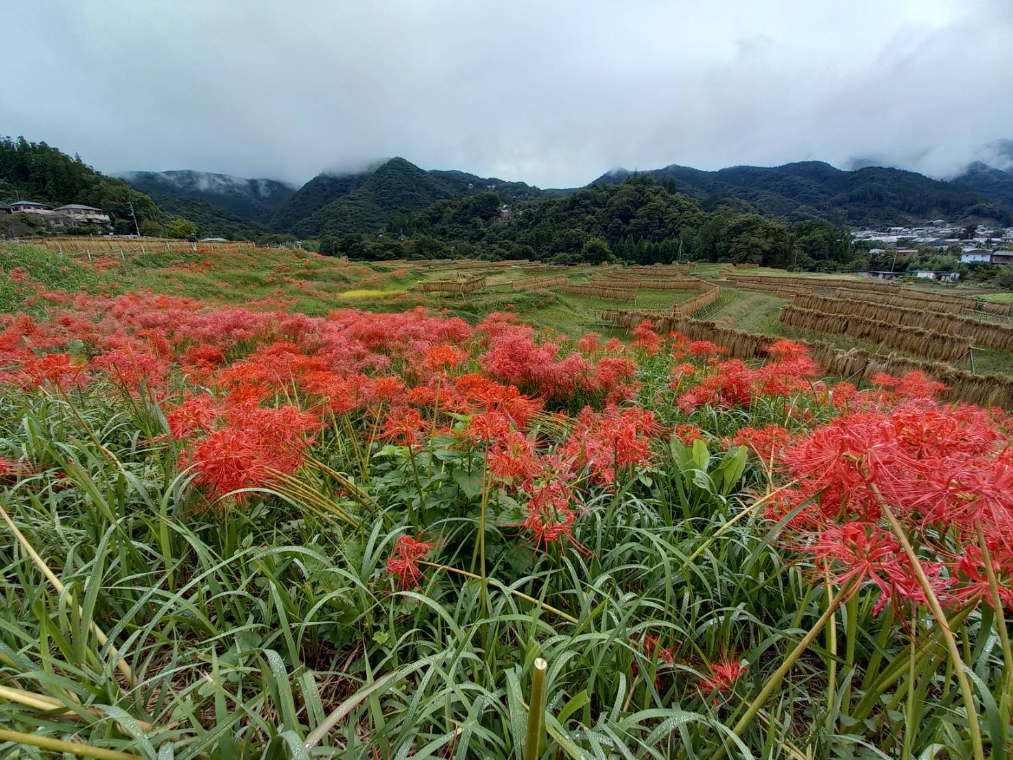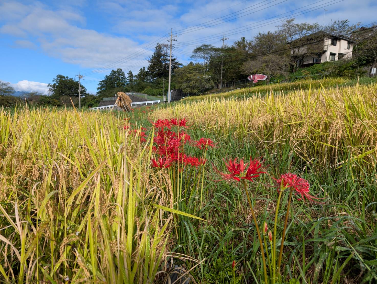 色褪せた花も目立ち始めましたが、写真のように色鮮やかな彼岸花と棚田のコラボも、まだ楽しめます。