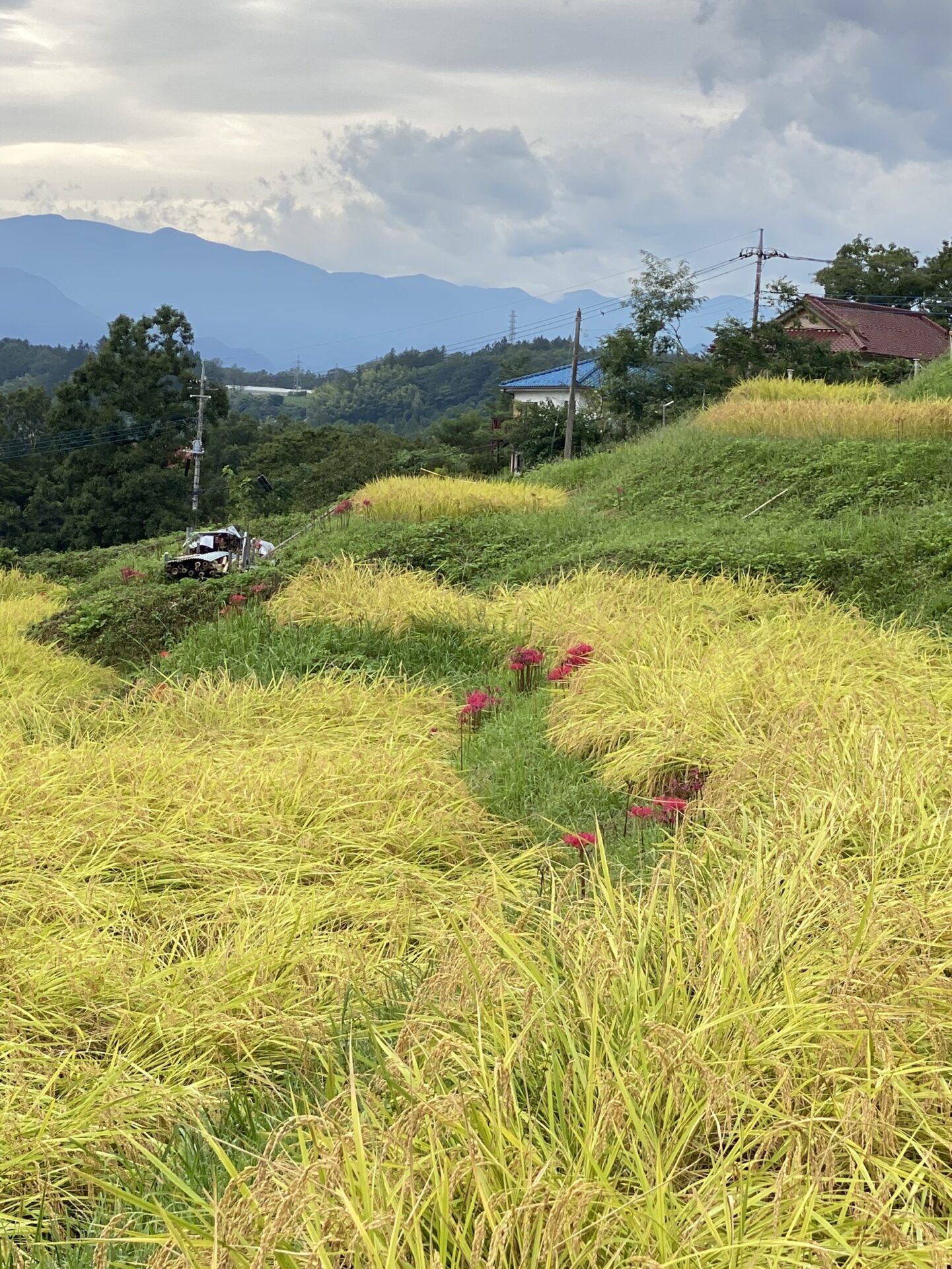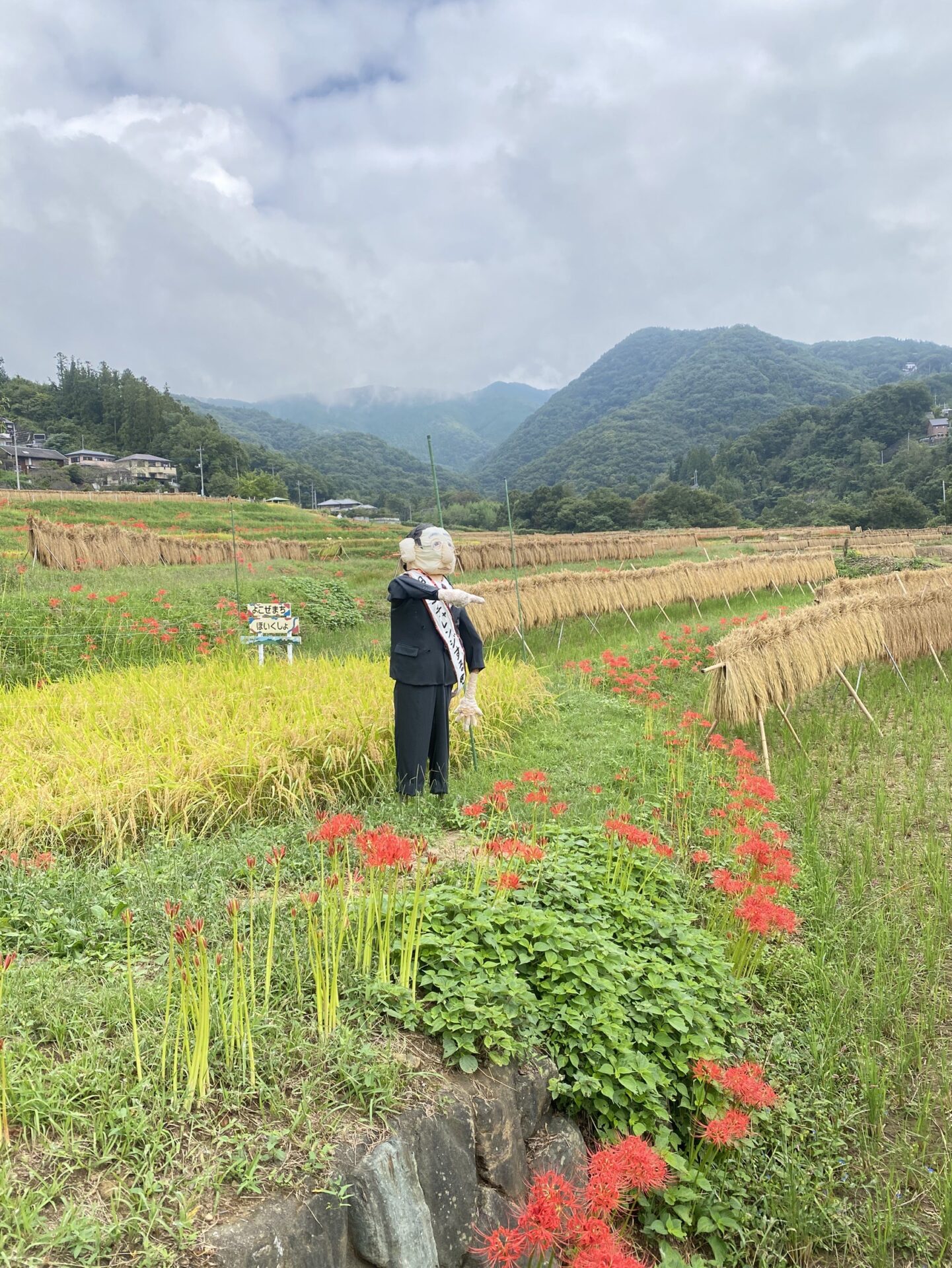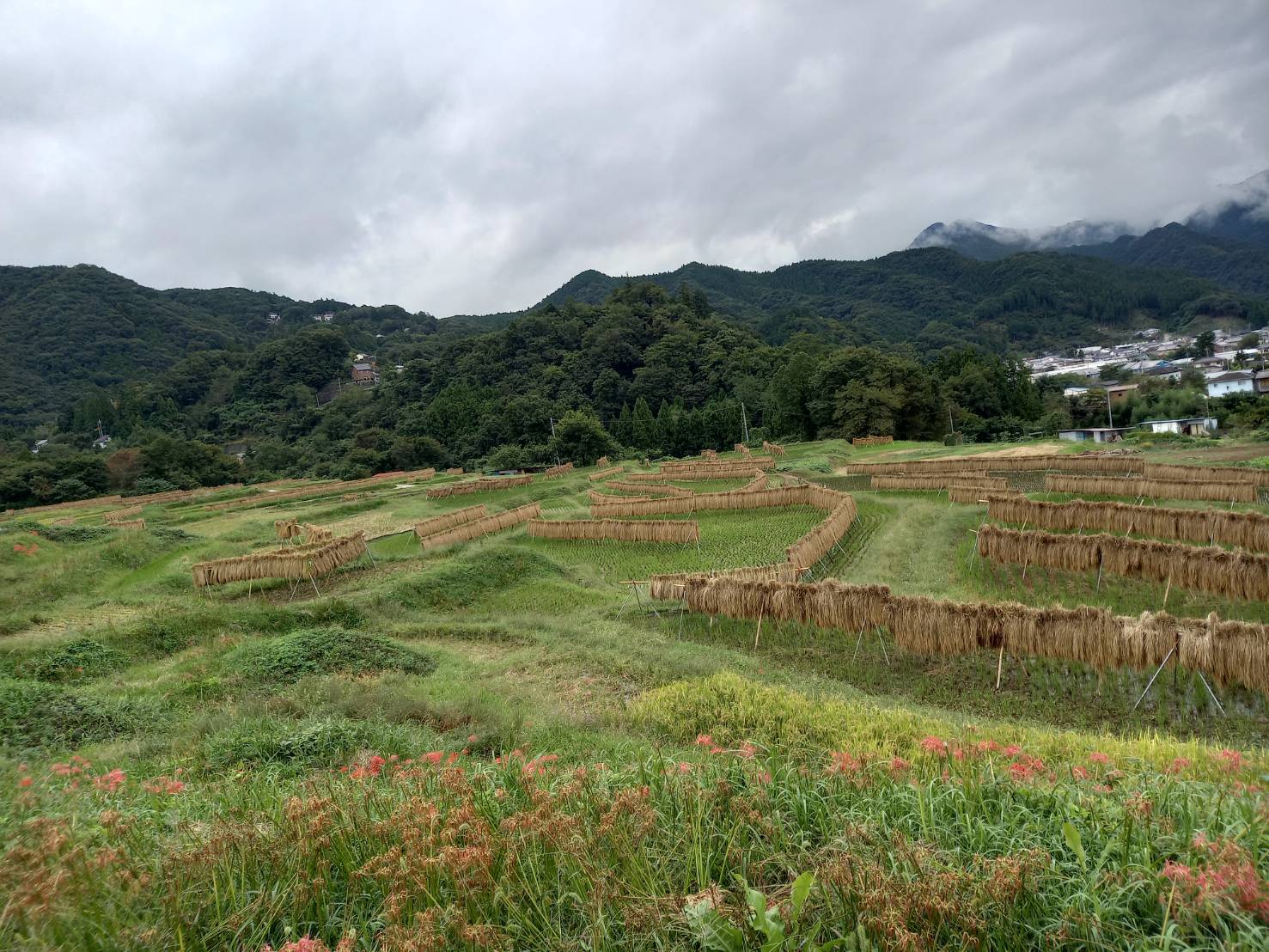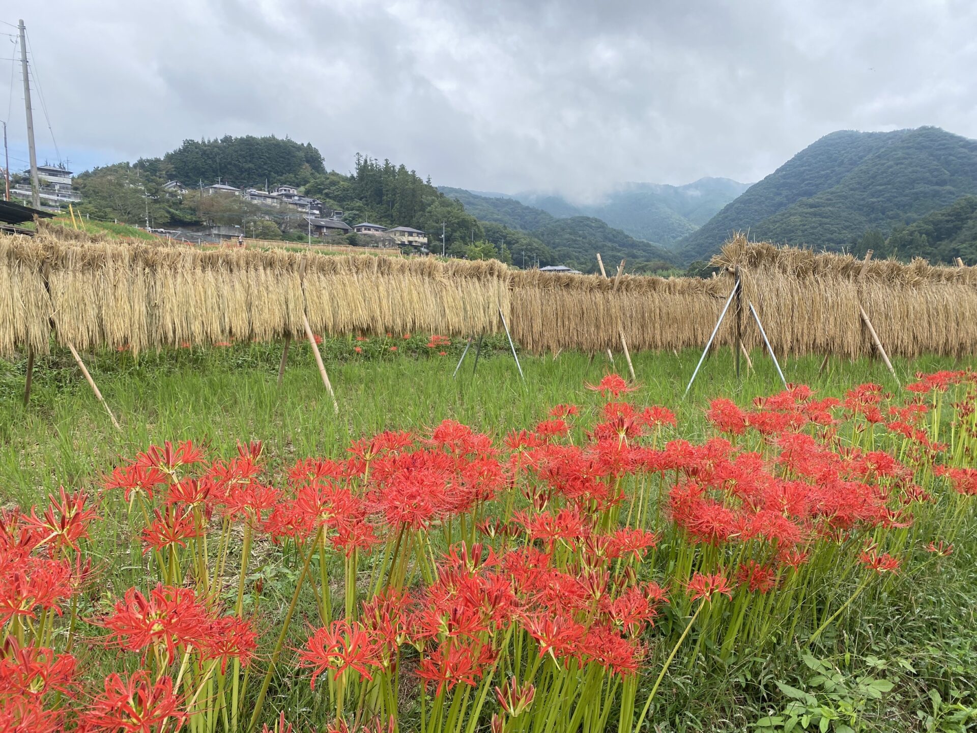 色褪せた花も目立ち始めましたが、写真のように色鮮やかな彼岸花と棚田のコラボも、まだ楽しめます。