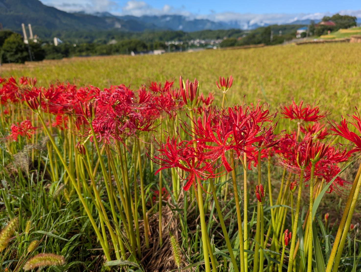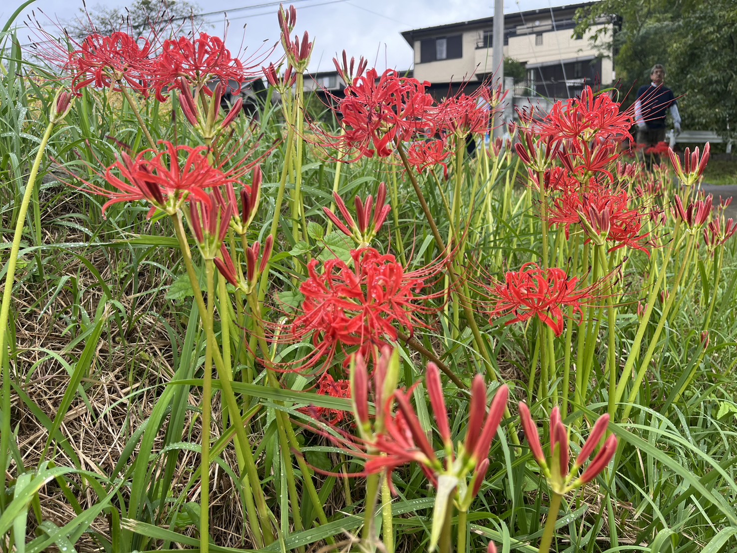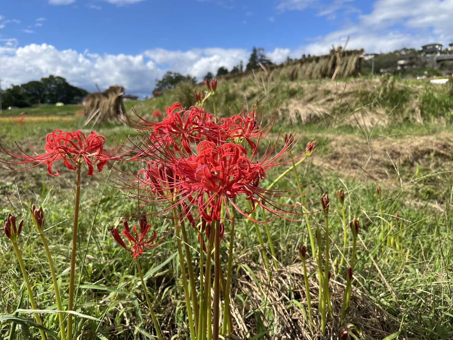 まだ、蕾の状態の彼岸花も多いですが、一部の場所でたくさん咲いてきました。