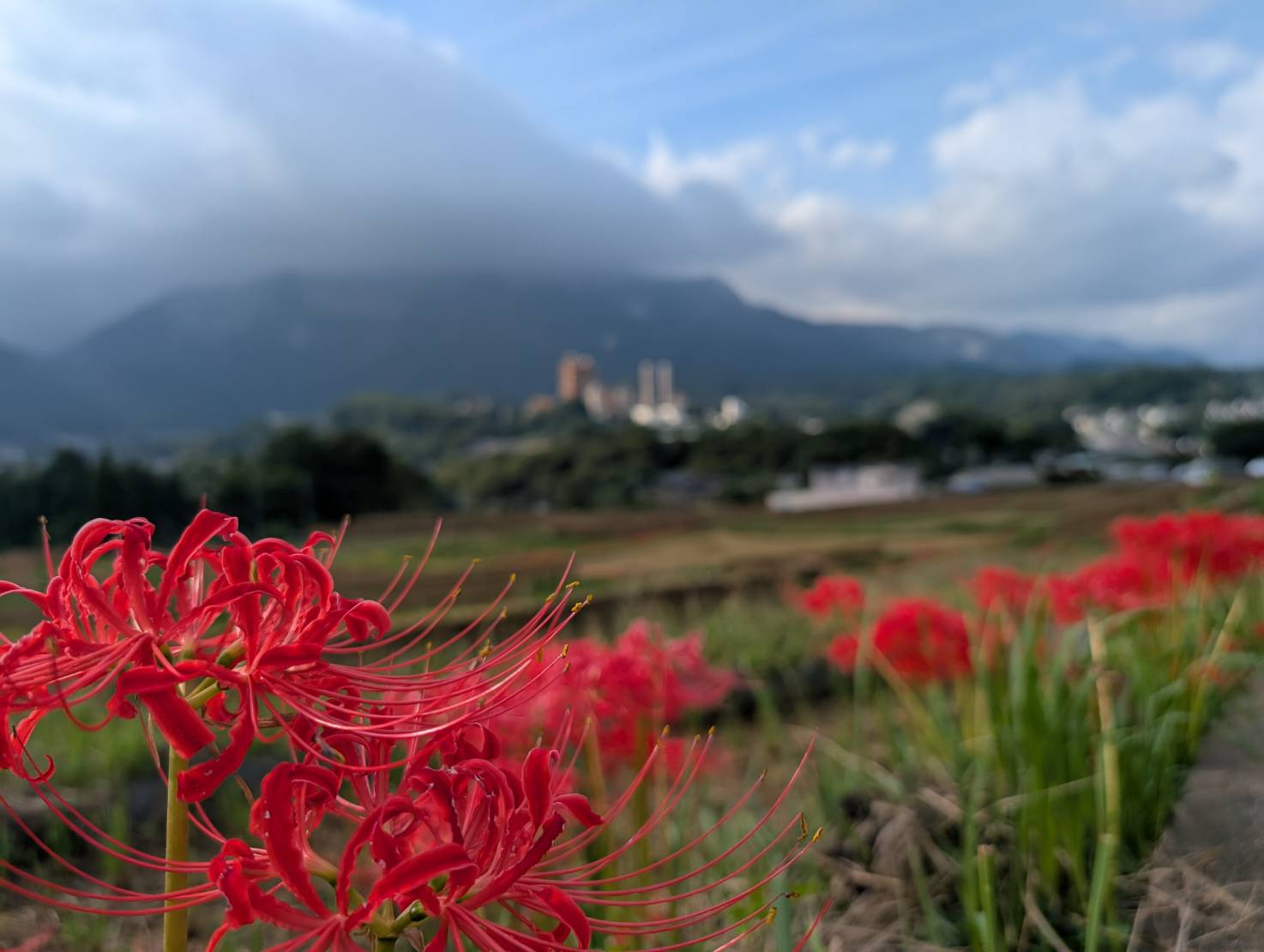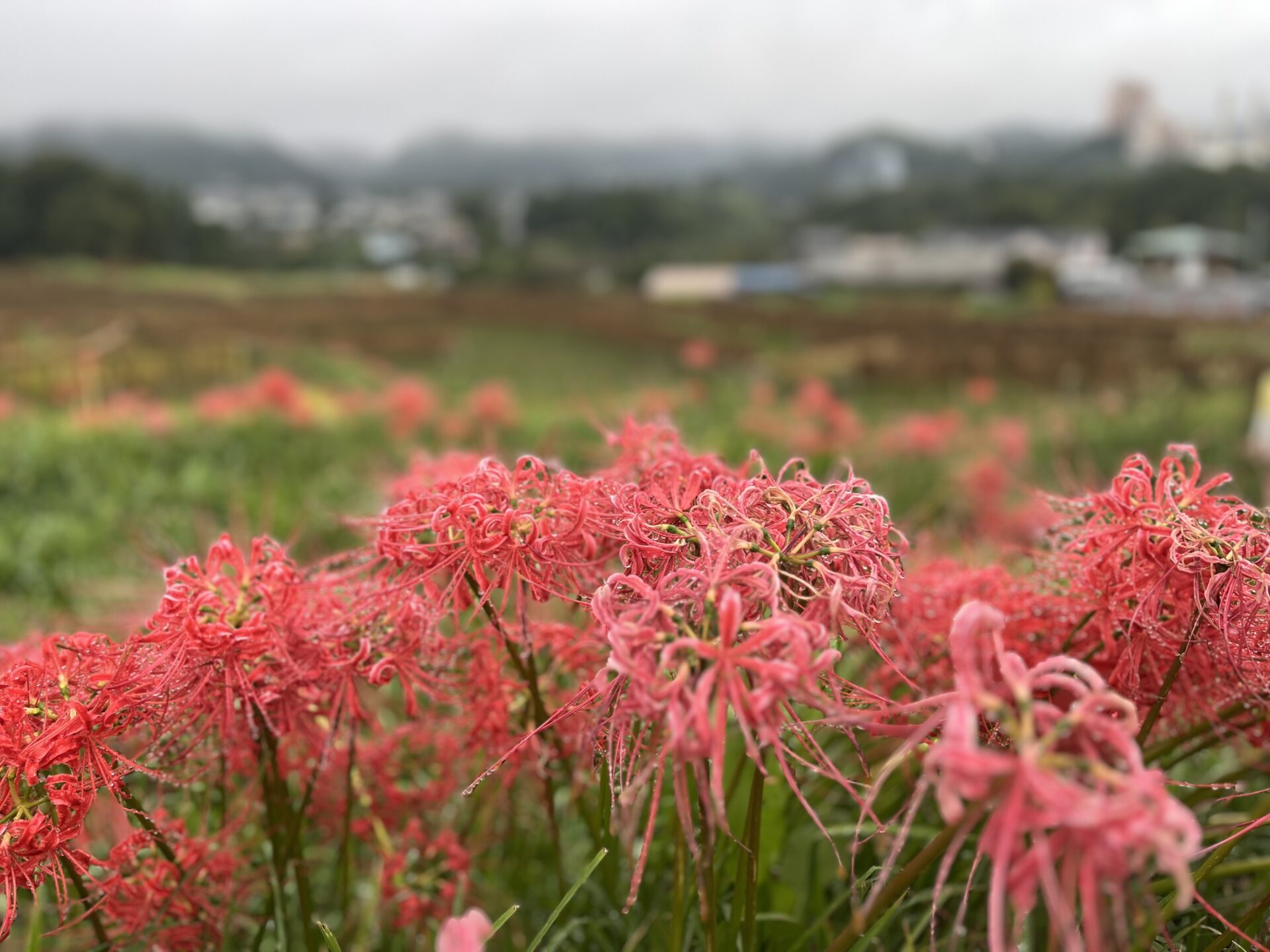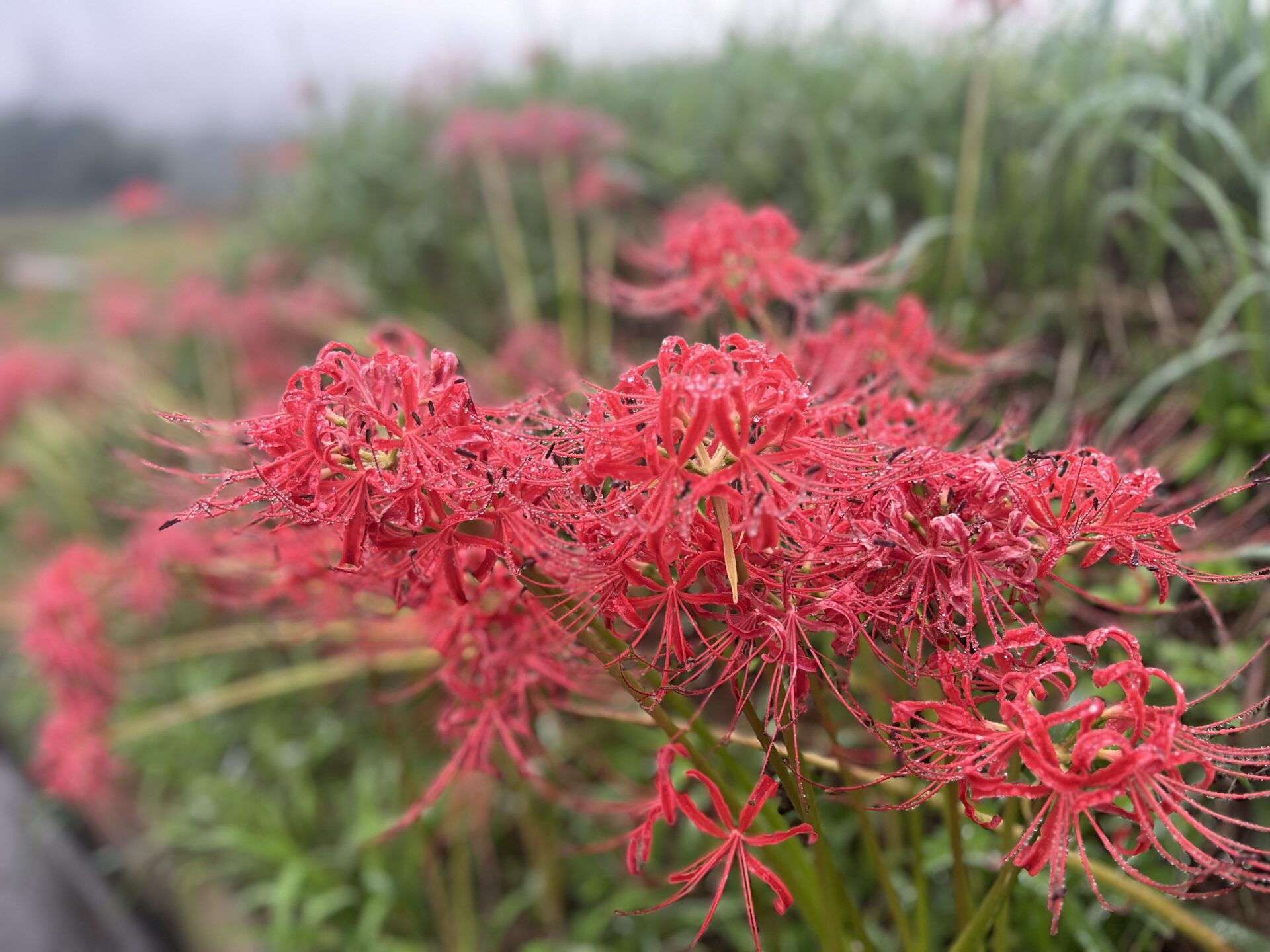 まだ、蕾の状態の彼岸花も多いですが、一部の場所でたくさん咲いてきました。
