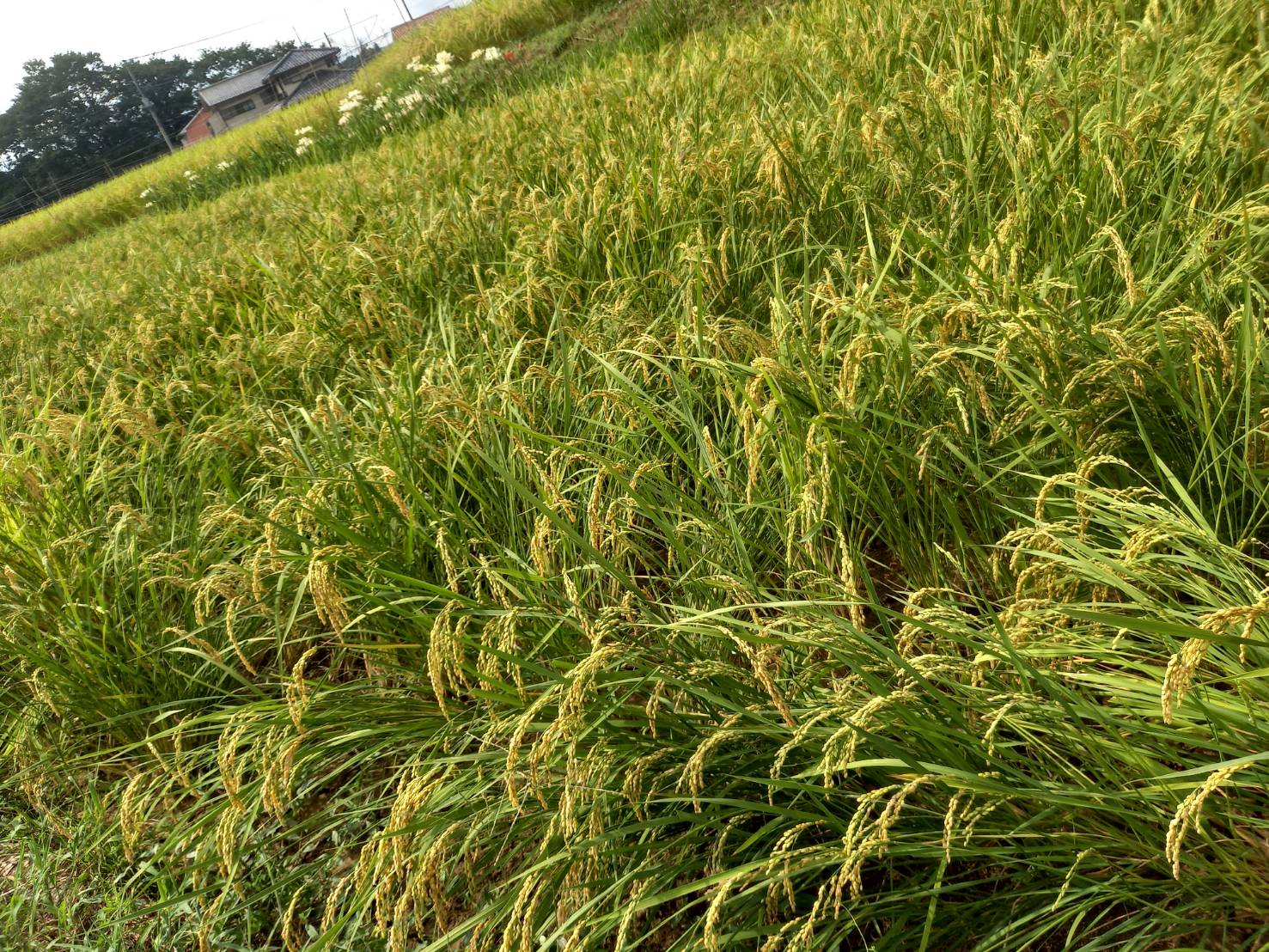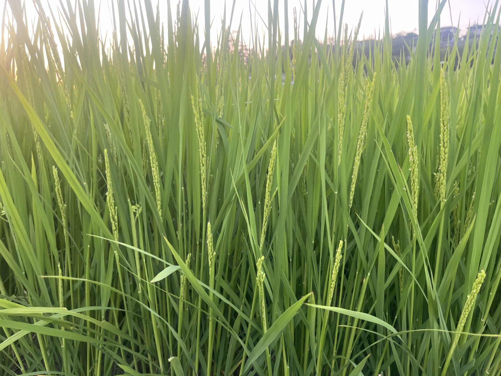暑さに負けず、稲が出穂(しゅっすい)を始めました。