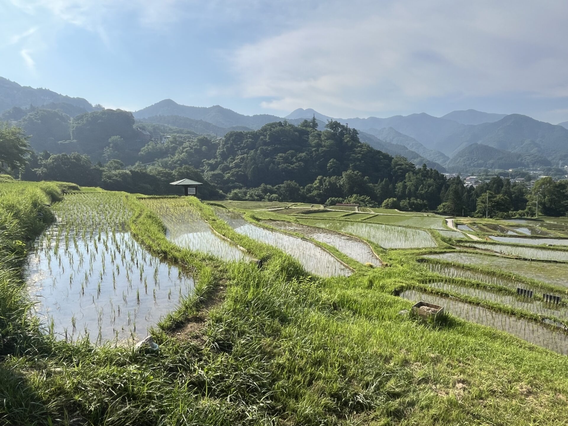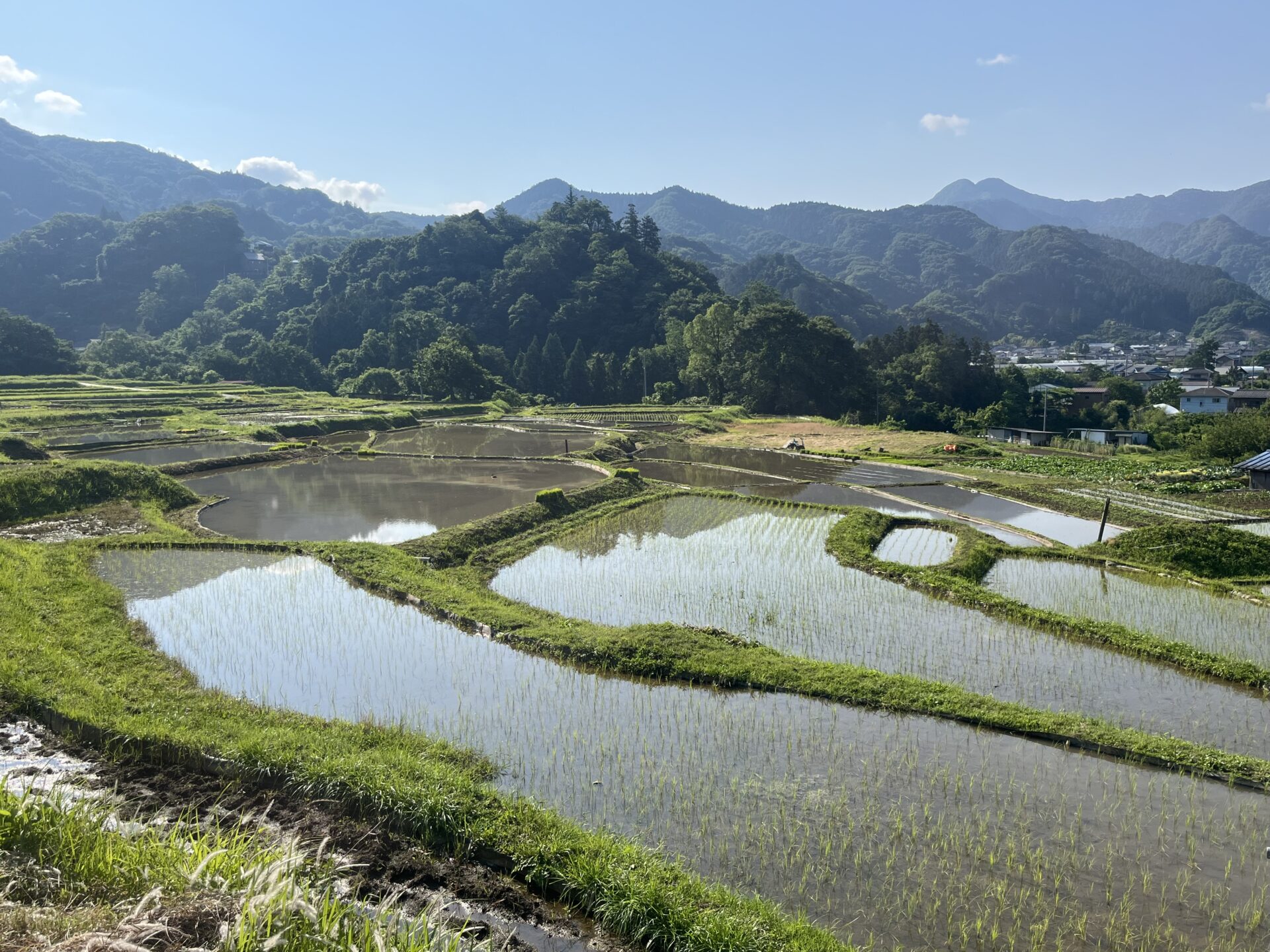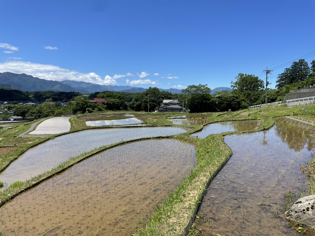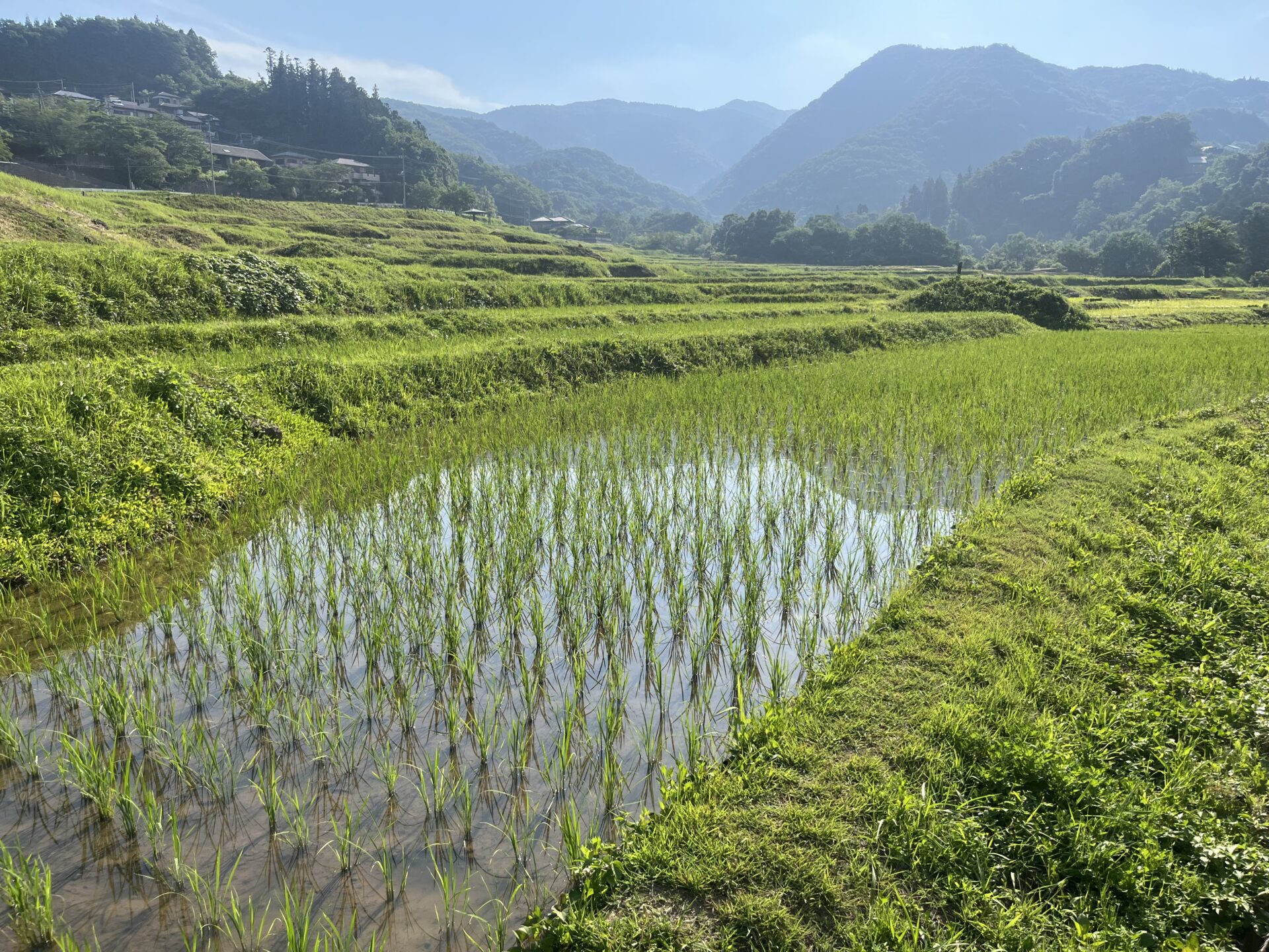 昨日の様子です。今年も稲が育つ風景が楽しみ。棚田で見る風景は、訪れる人々に季節の流れを感じさせてくれます。