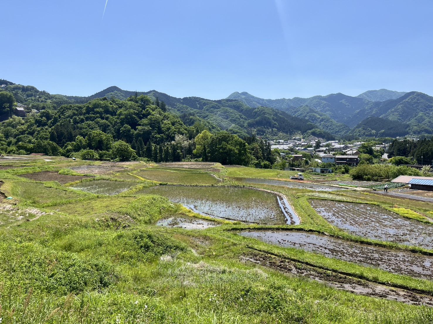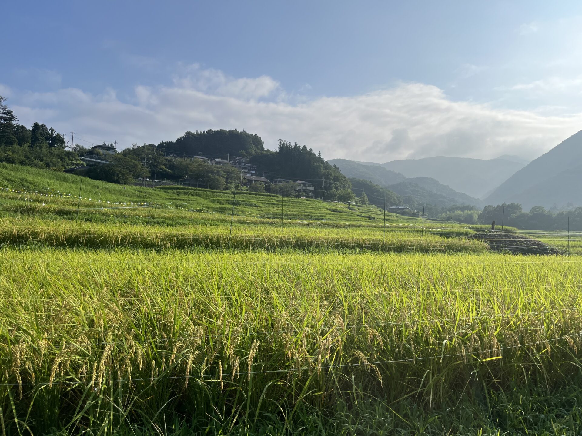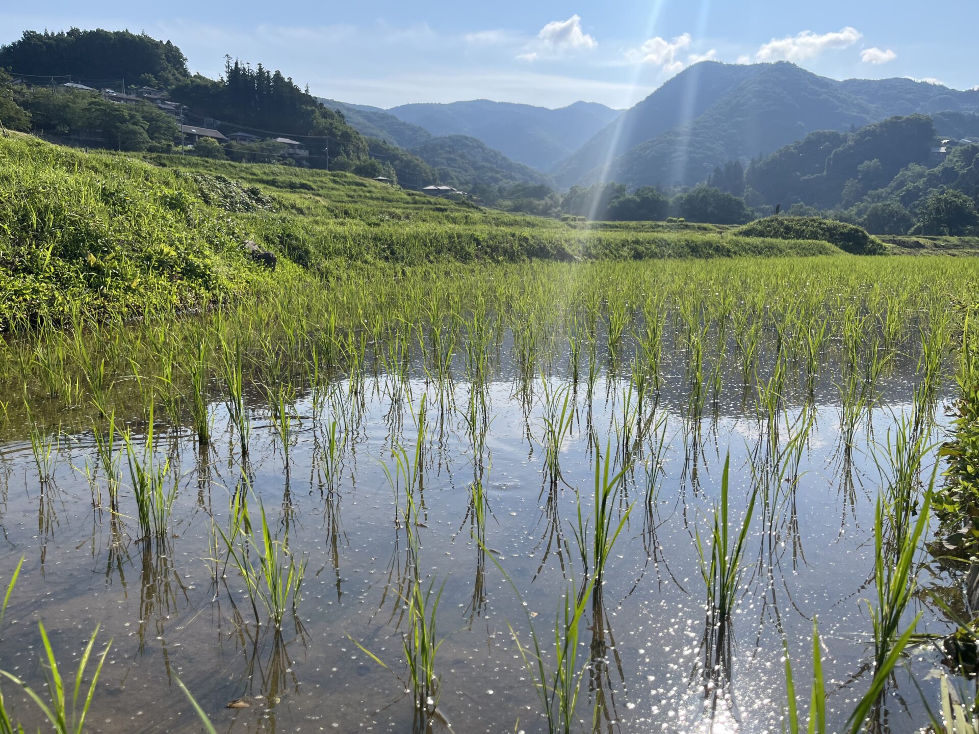昨日の様子です。今年も稲が育つ風景が楽しみ。棚田で見る風景は、訪れる人々に季節の流れを感じさせてくれます。
