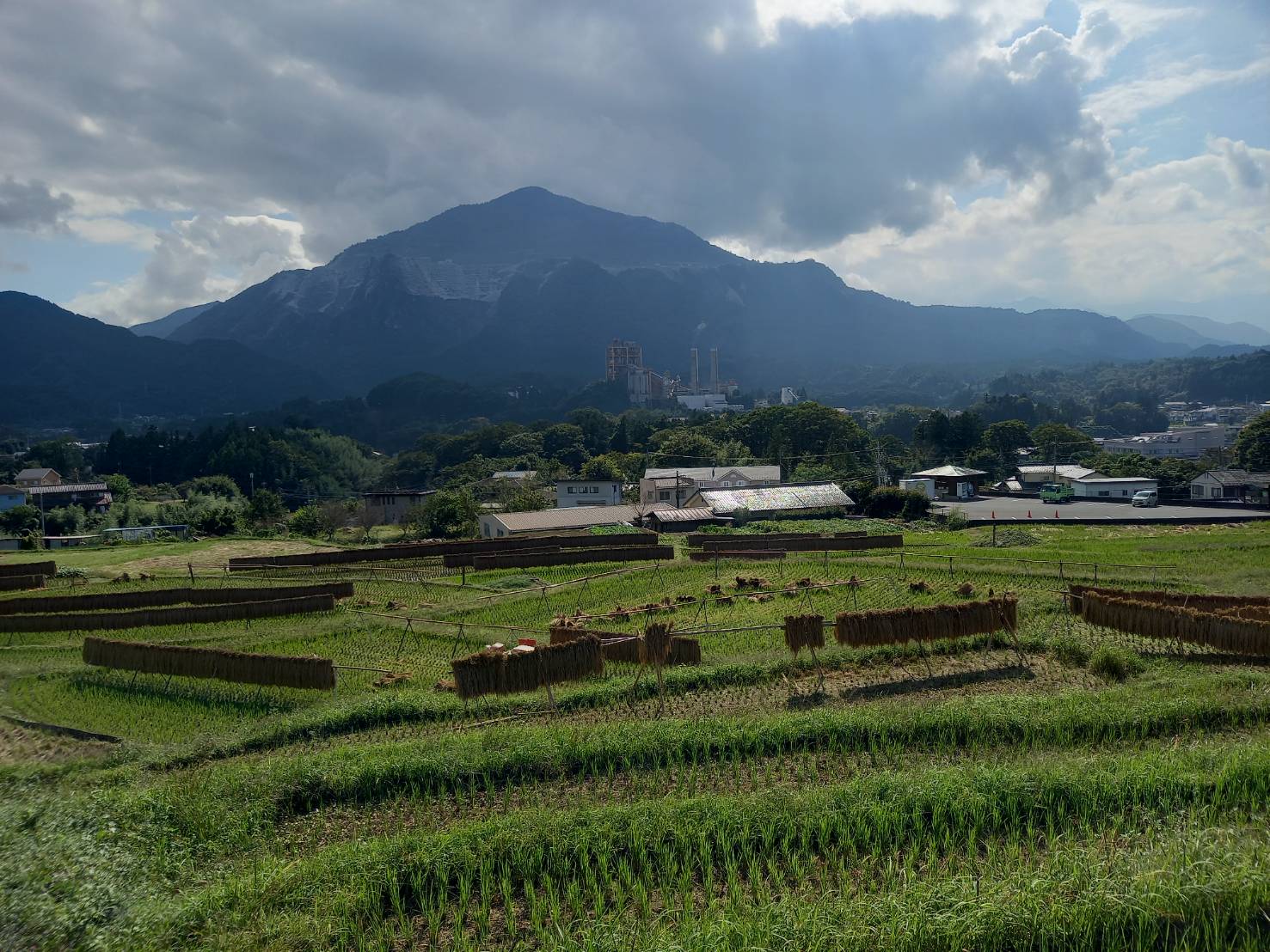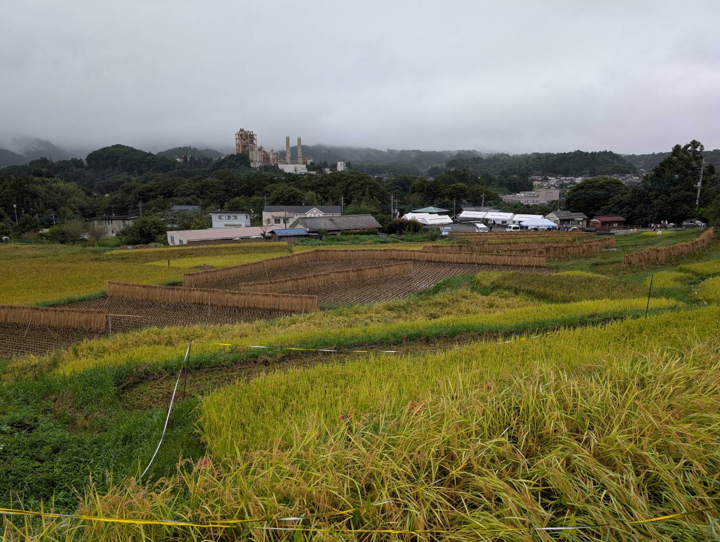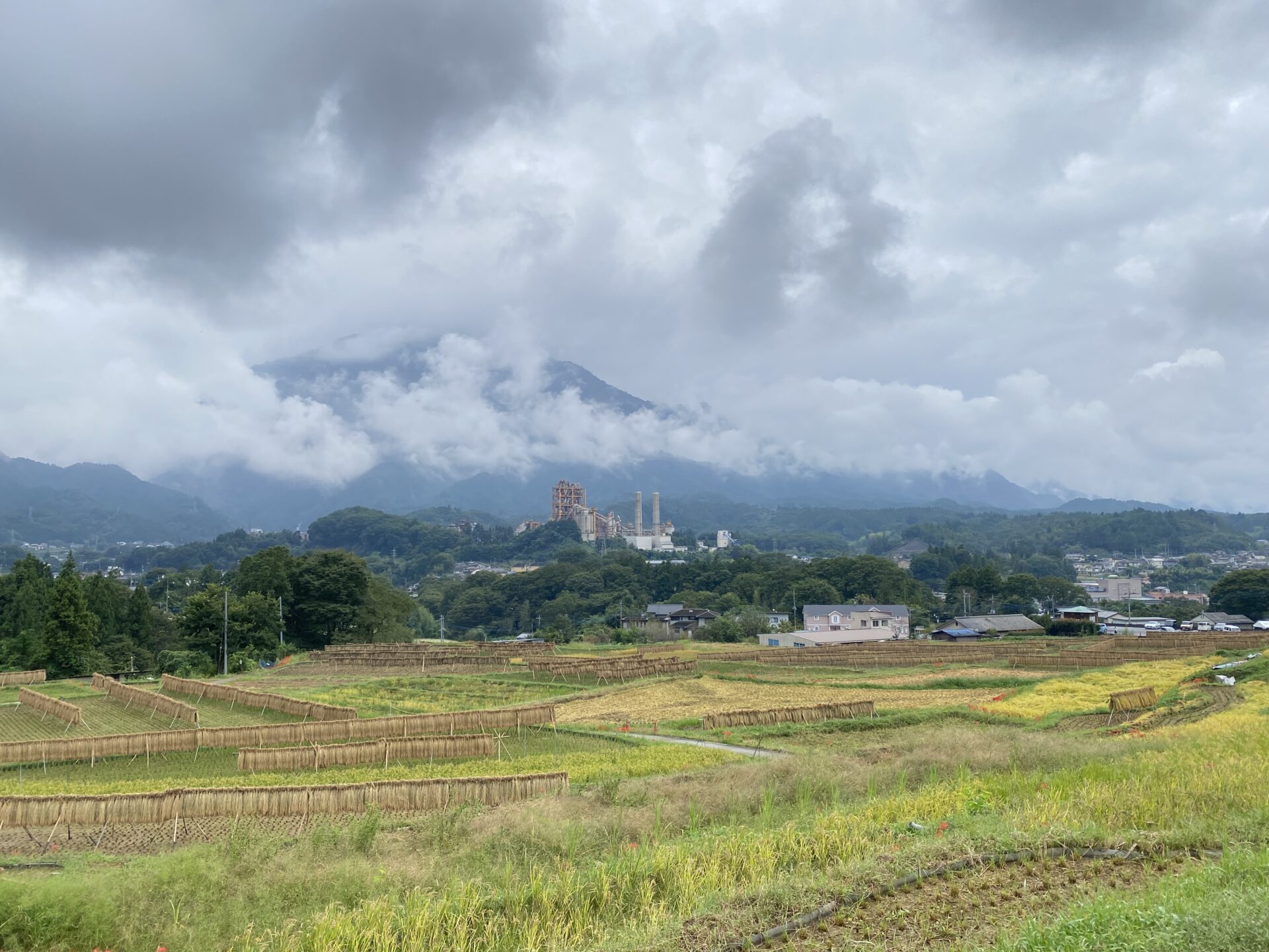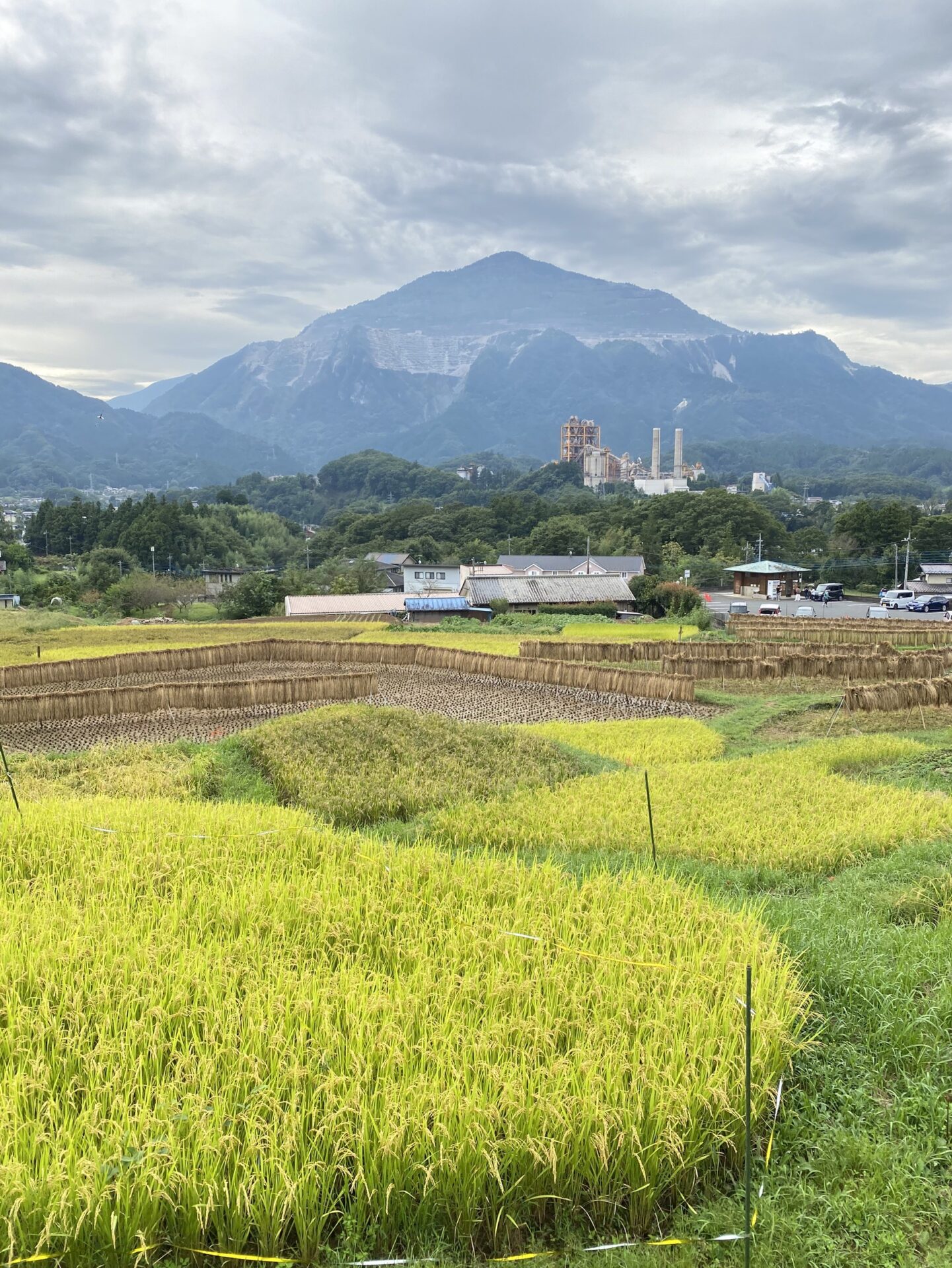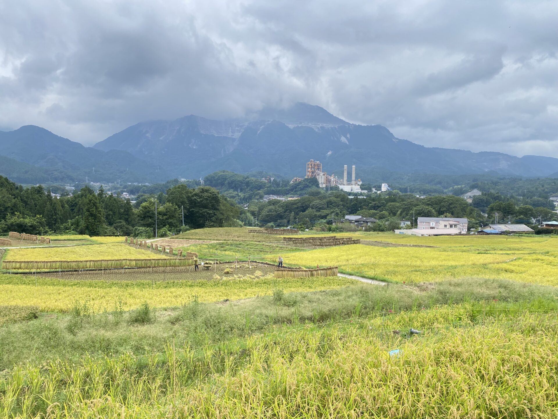ハゼかけ(束ねた稲を棒などに架けて天日(太陽光線)と自然風によって乾燥させること)が情緒を感じさせます。
