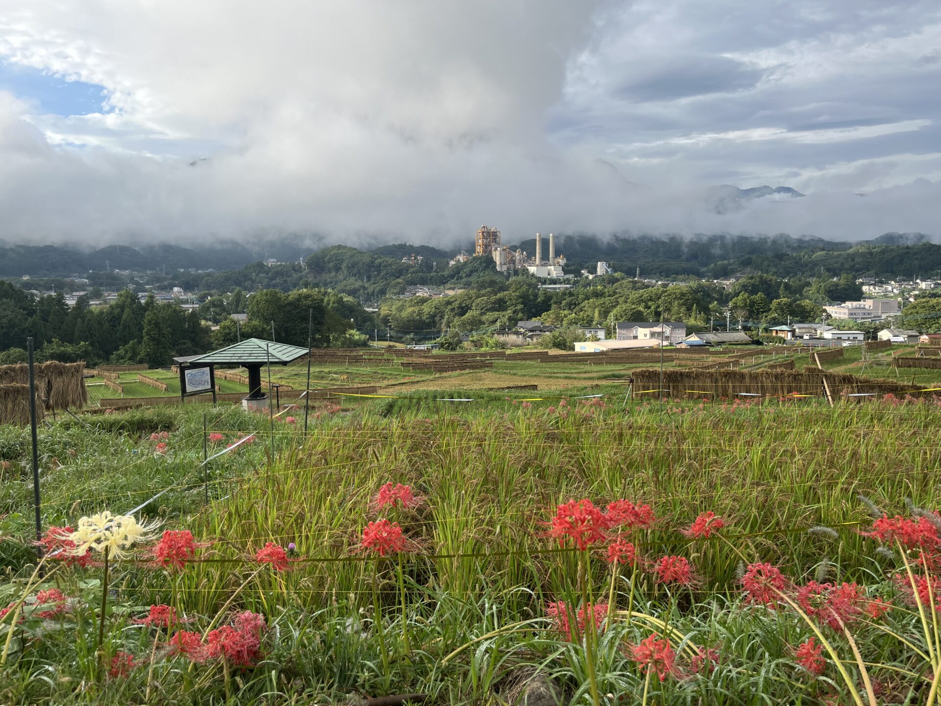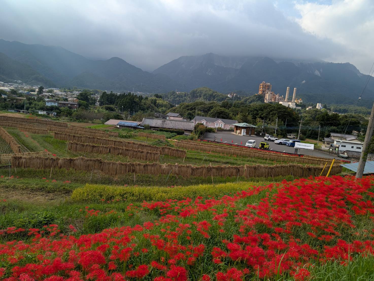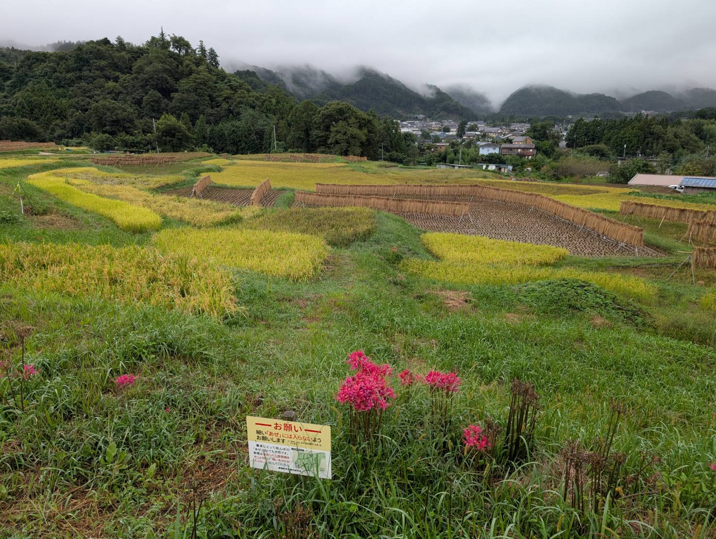 明日9/23(月)寺坂棚田南側駐車場は、彼岸花まつりの片付けにより使えません。