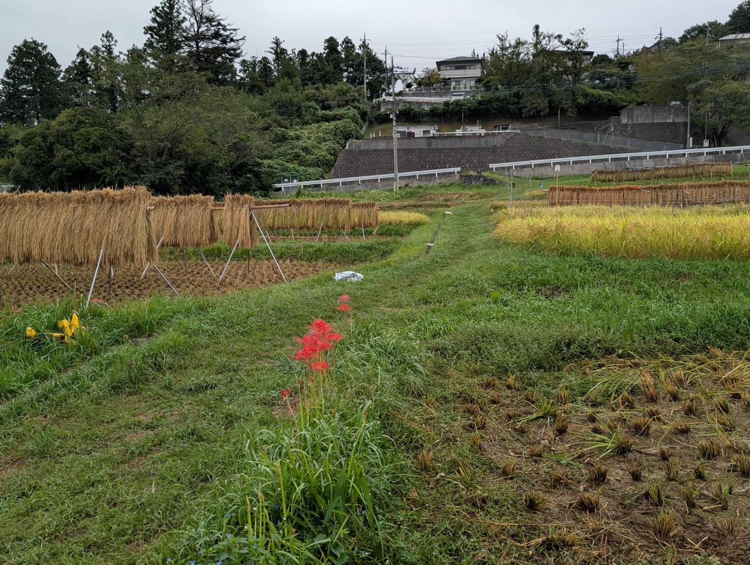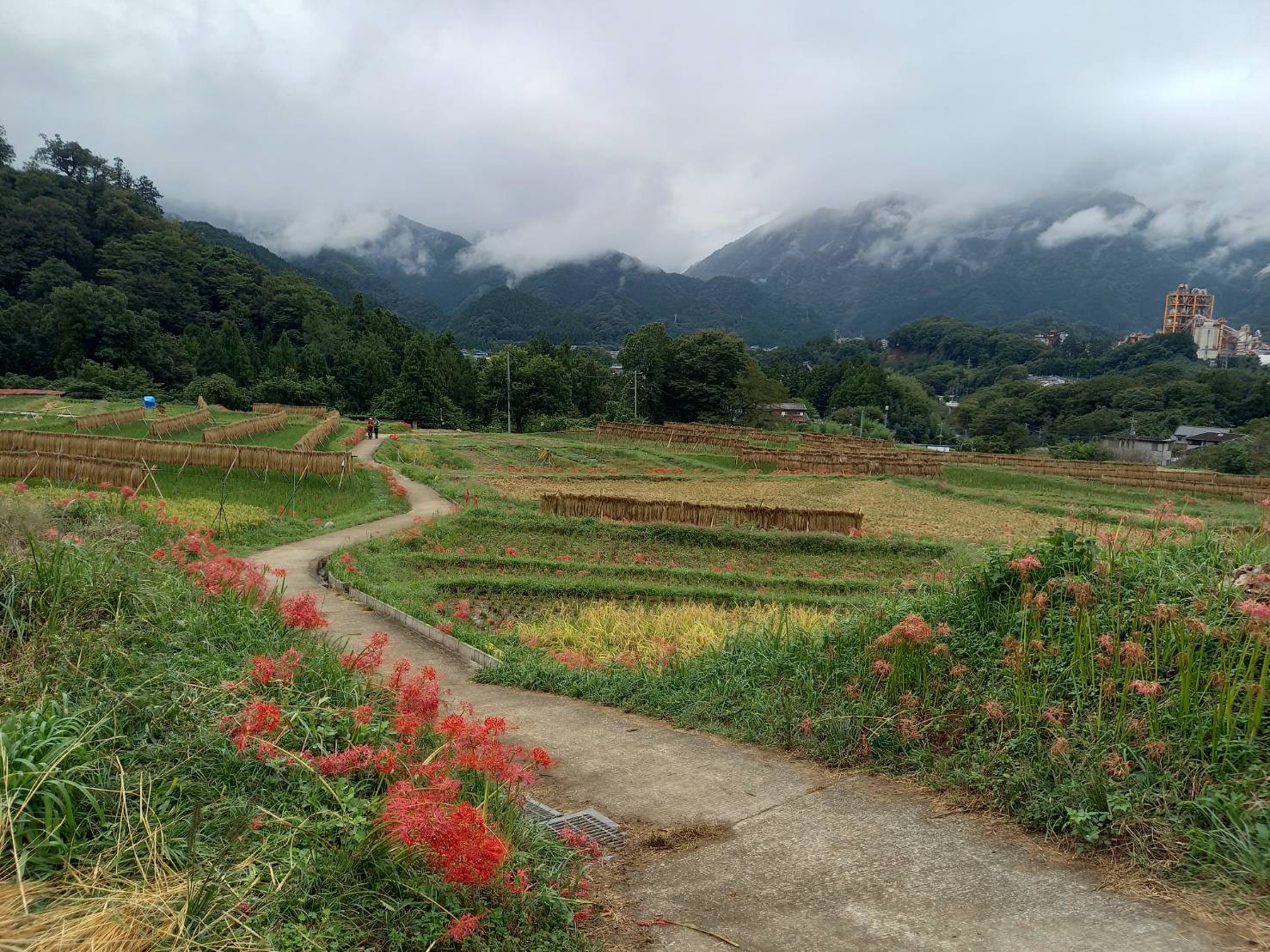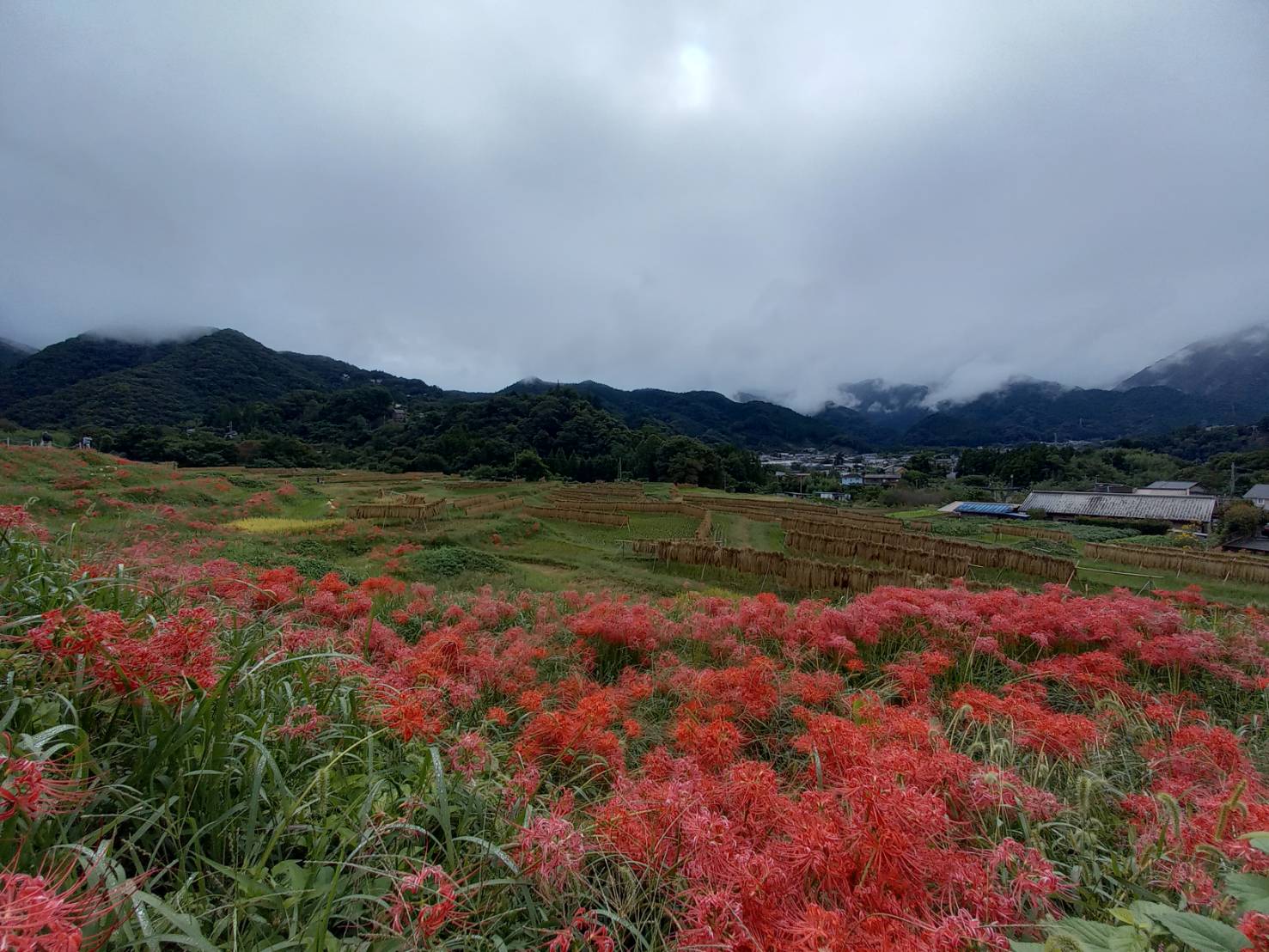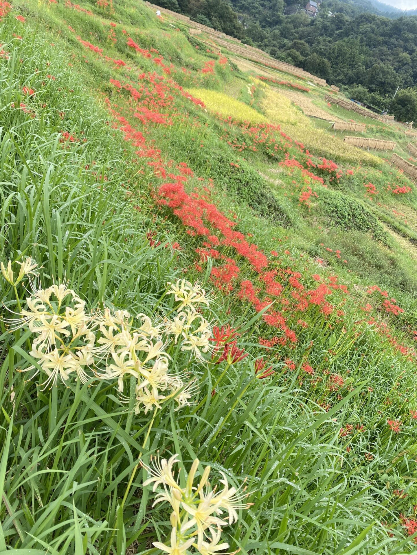 明日9/23(月)寺坂棚田南側駐車場は、彼岸花まつりの片付けにより使えません。