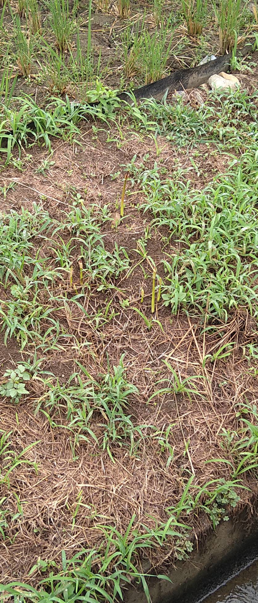 水は1〜2割入っていて、畦道の所々にマーガレットや黄色い花、紫の花が咲いてます。
