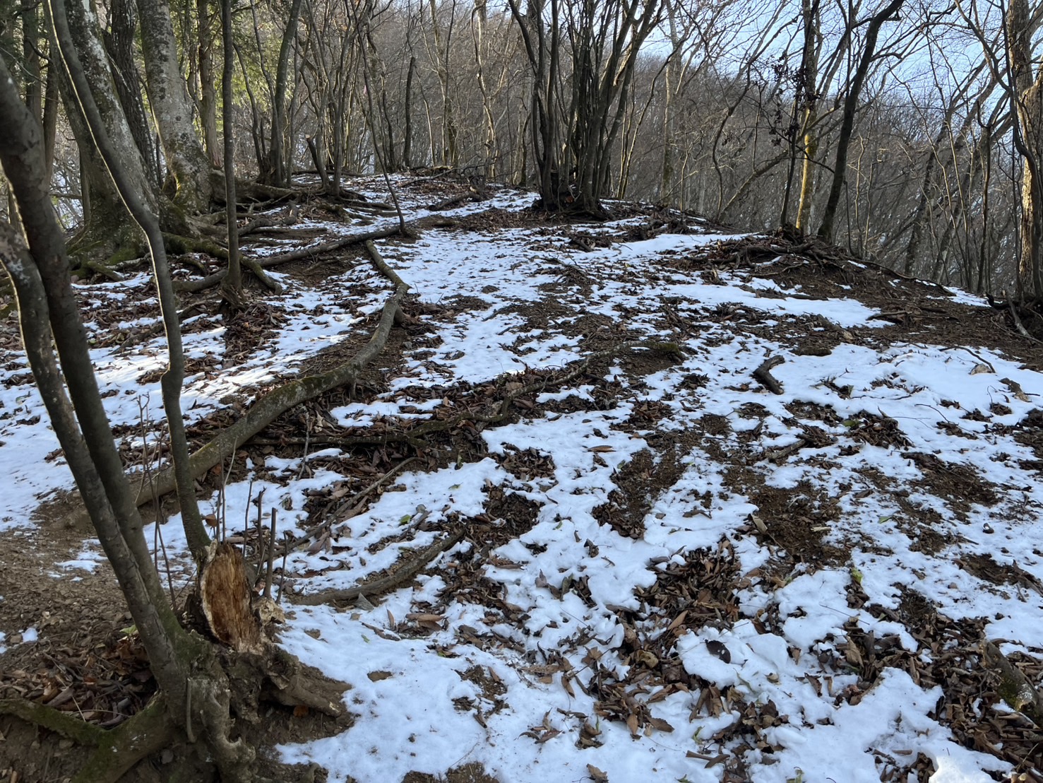 登山道は雪が残っており、凍結しやすくなっておりますので、転倒など注意が必要です。
