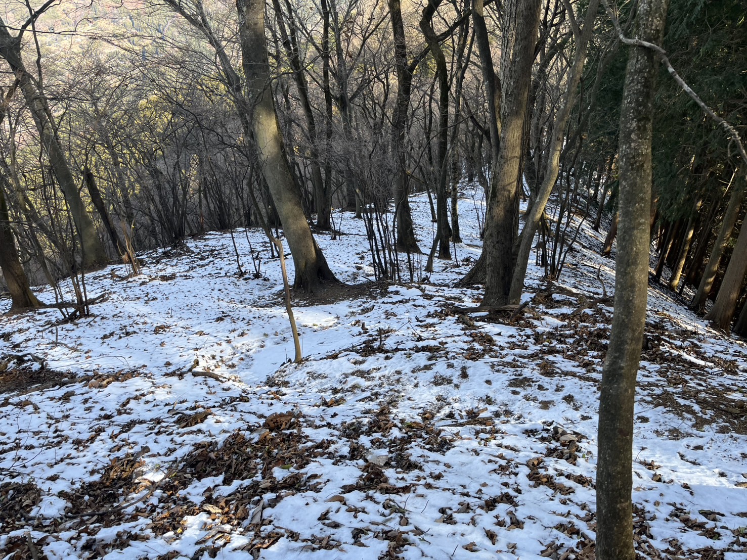 武甲山の登山道は積雪があり、大変滑りやすくなっています。