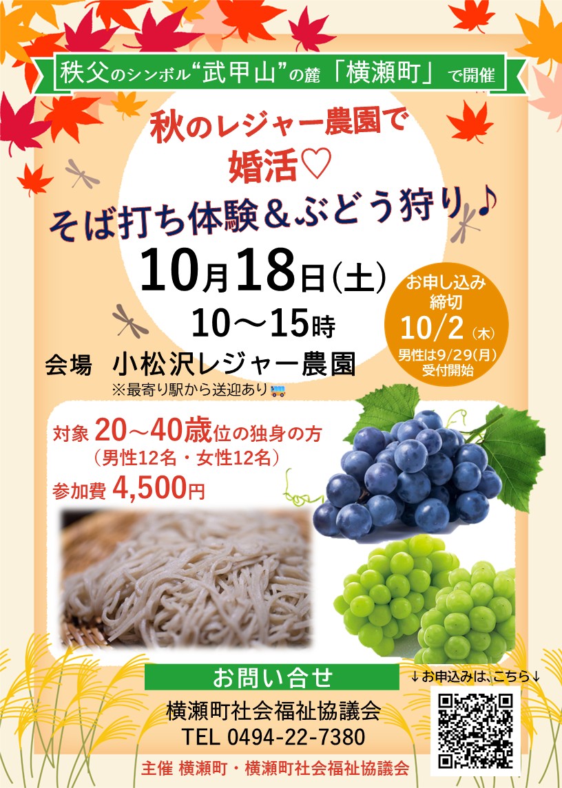 【要申込】秋のレジャー農園で婚活♡そば打ち体験&ぶどう狩り♪