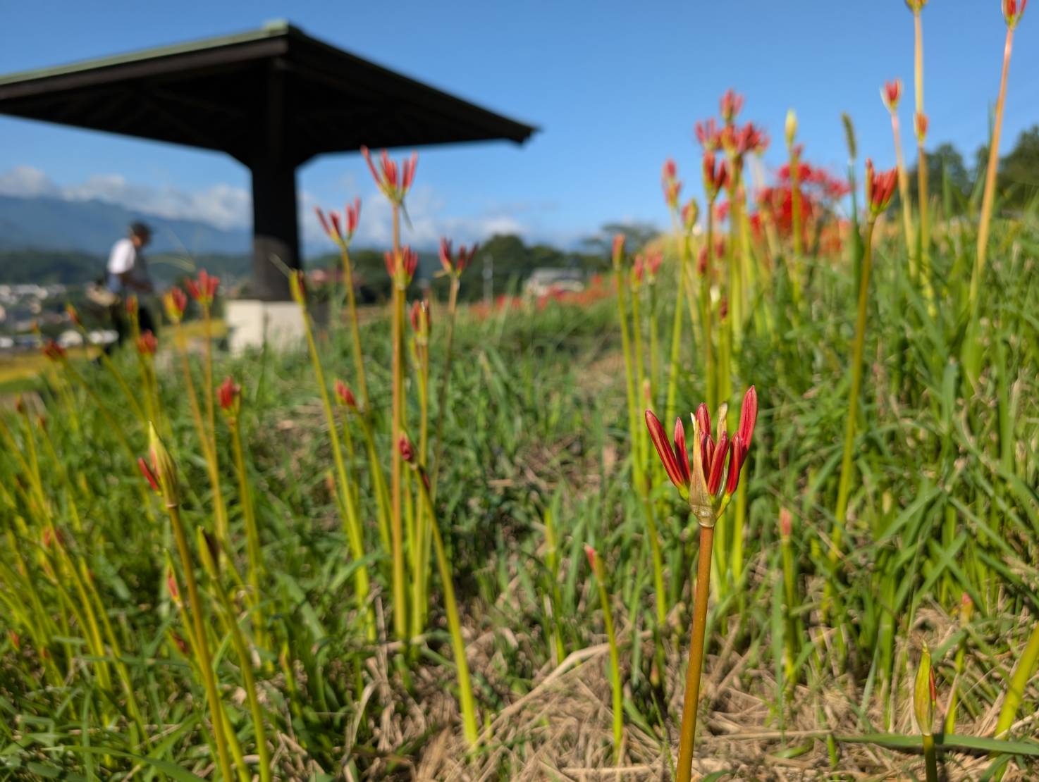 本日の様子です。開花が進んでいます。彼岸花まつりの日、みなさんが笑顔で棚田を楽しめるよう願っています。