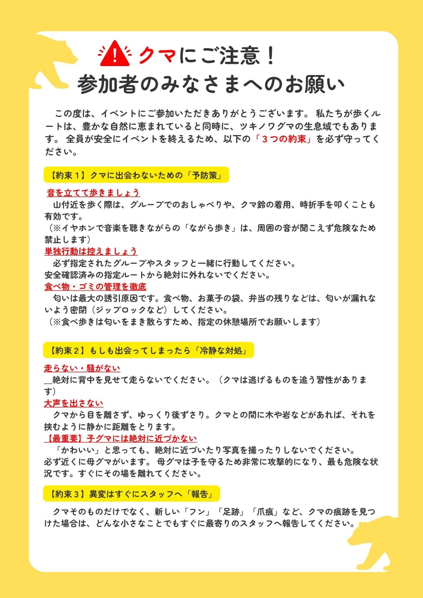 全員が安全にイベントを終えるため、こちらをご一読願います。