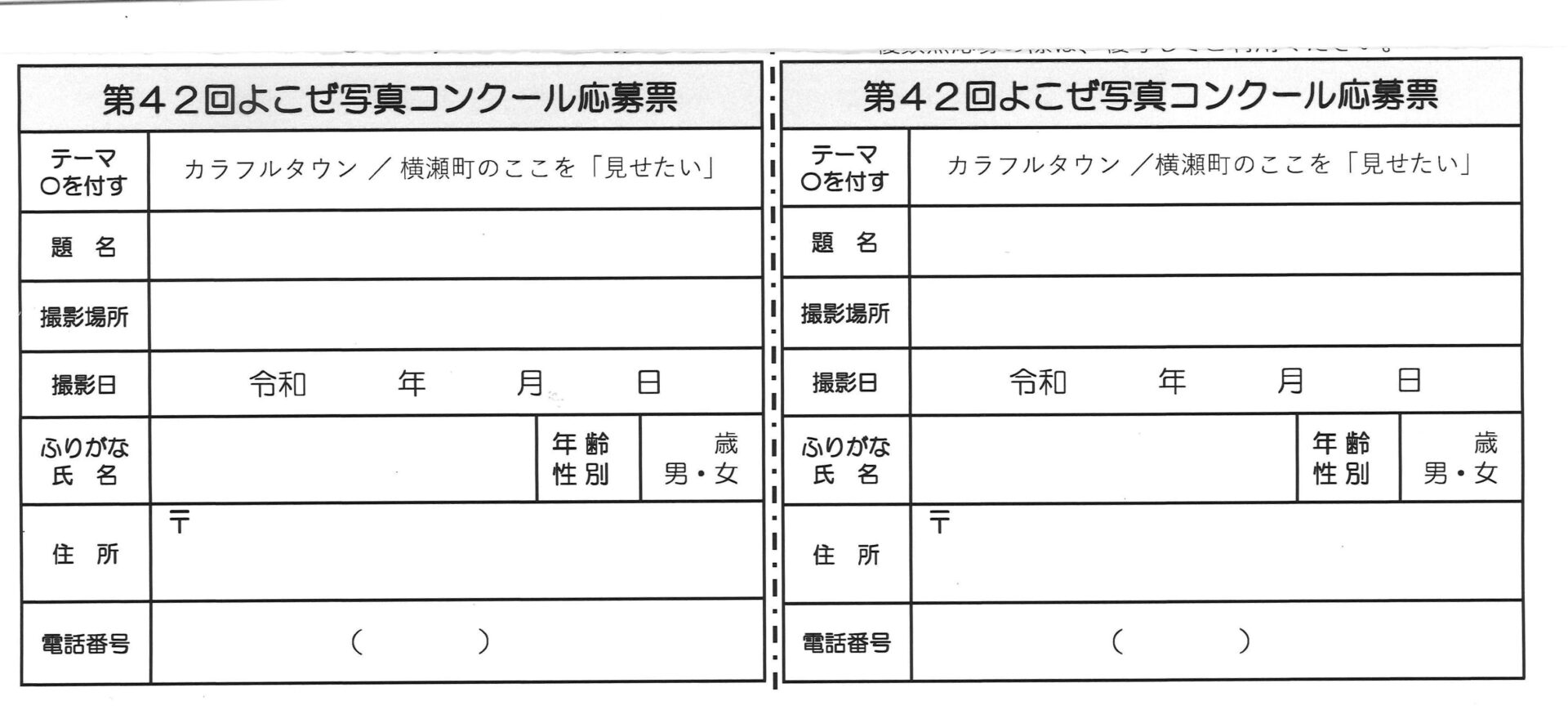 下記の応募票に必要事項を明記し、応募写真の裏に貼付し、横瀬町振興課へ郵送いただくか、直接お持ちください。