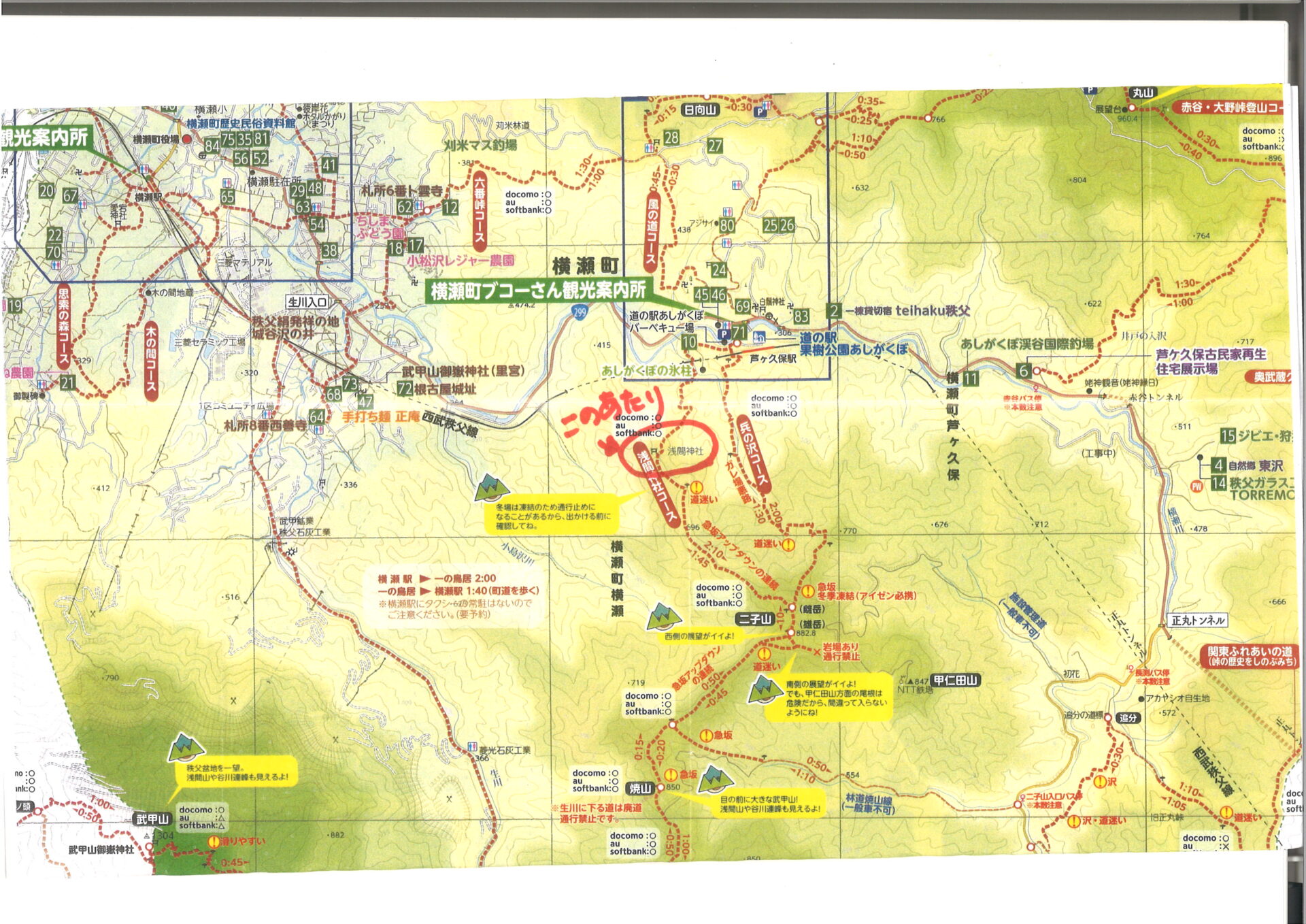 午前11時30分頃、横瀬町芦ヶ久保地区 山の花道より県民の森に向かった、丸山林道分岐付近で熊らしき動物の目撃情報がありました。