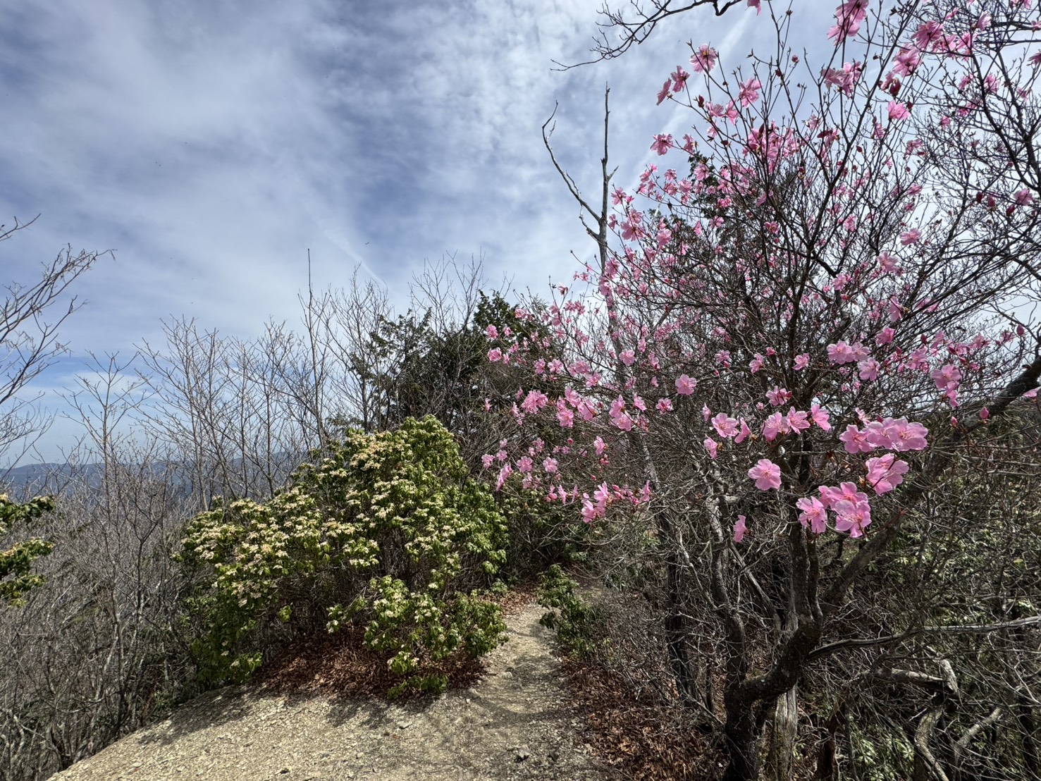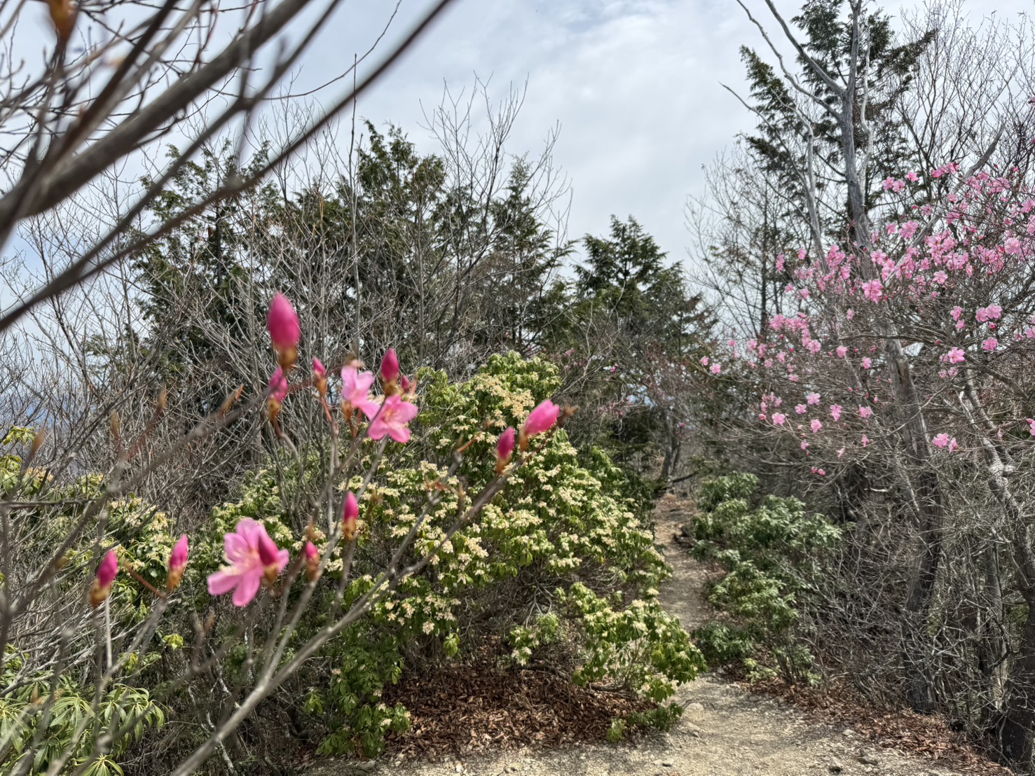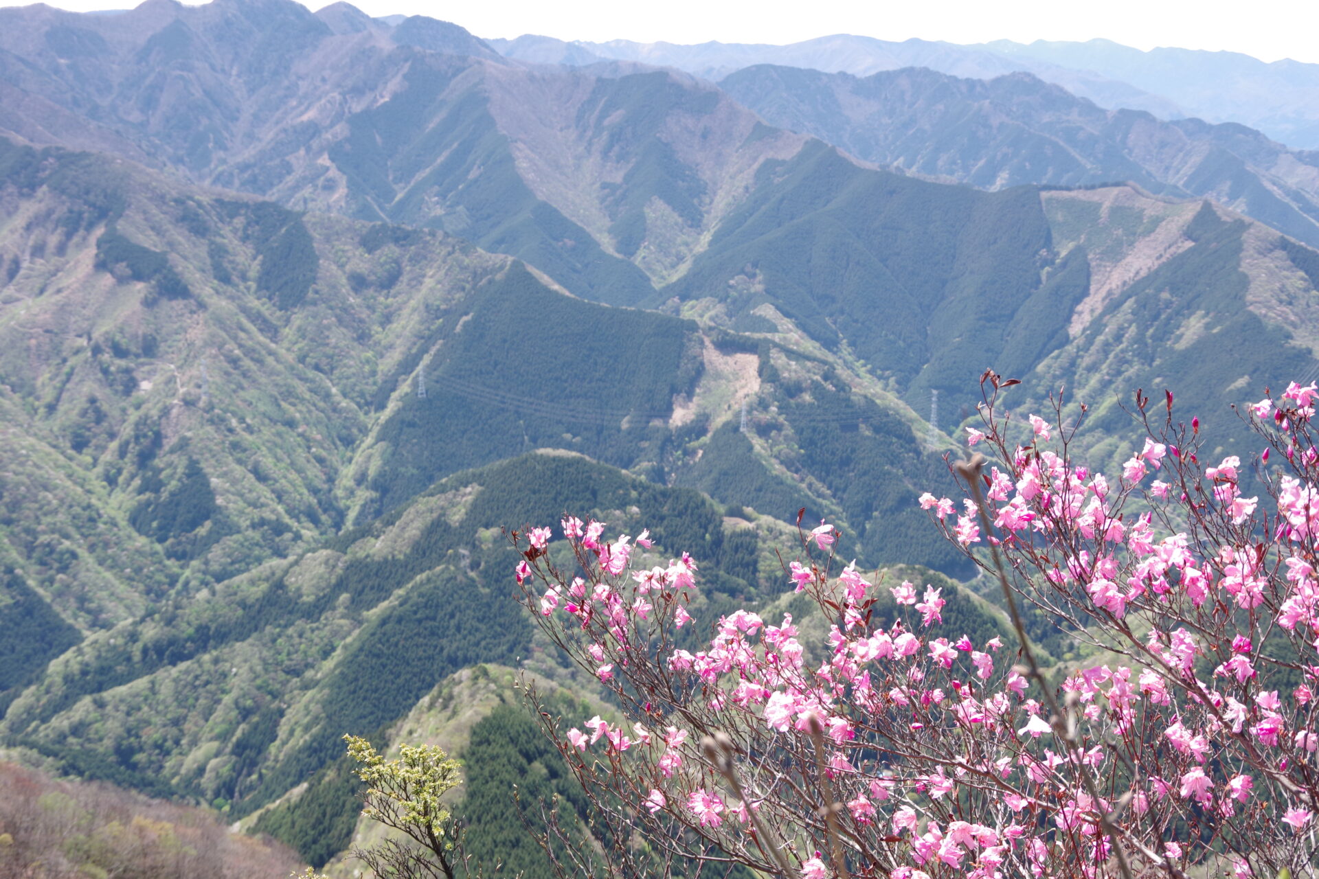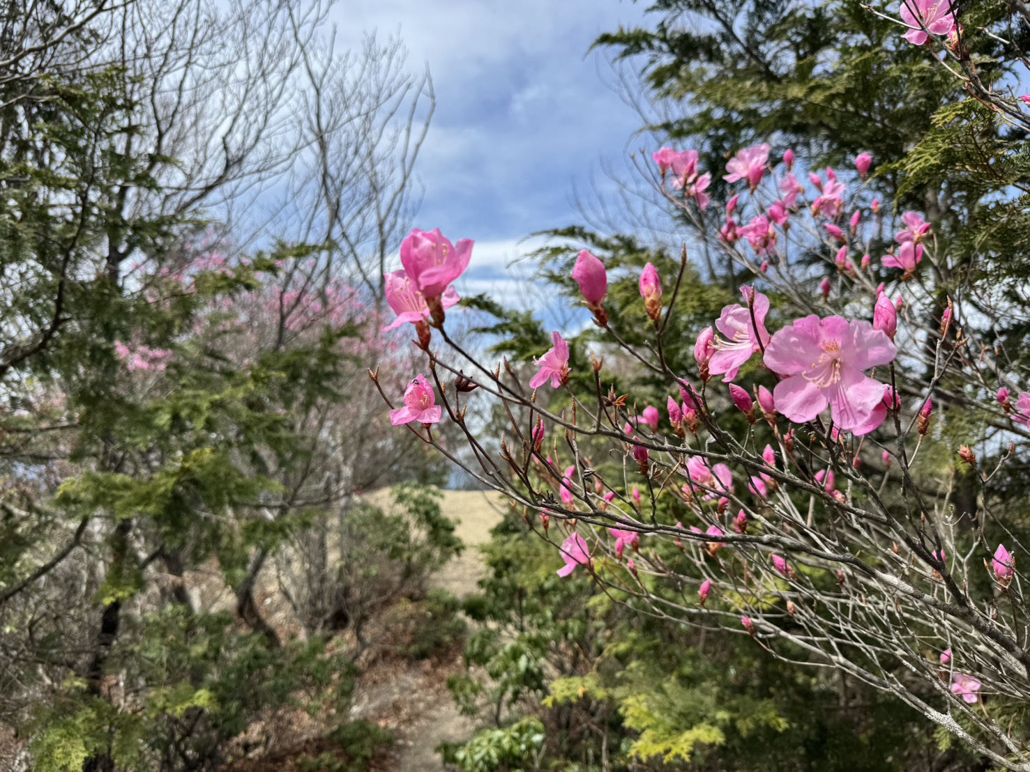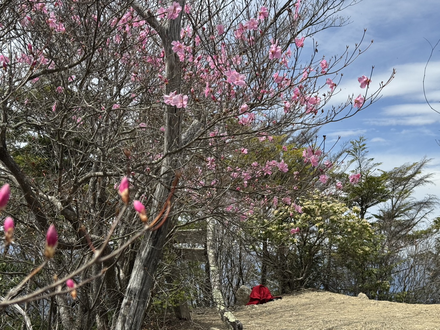 小持山山頂のアカヤシオが見ごろを迎えております。