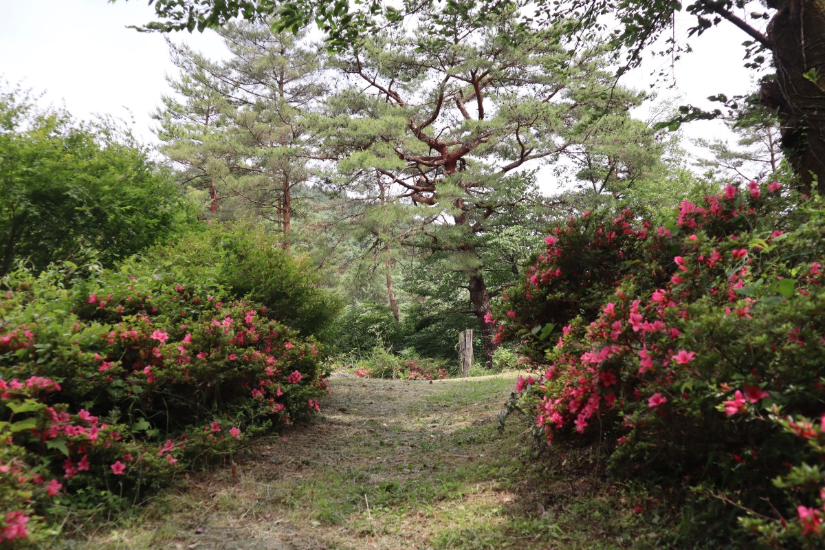 春には山の花道内にあるツツジが咲き誇り、秋には周りの山々の紅葉を満喫できます。(桜の集落地帯は立入りができませんので、ご容赦ください。)