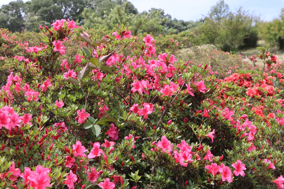駐車場上側の遊歩道には、しだれ桜やつつじが咲き始めています。